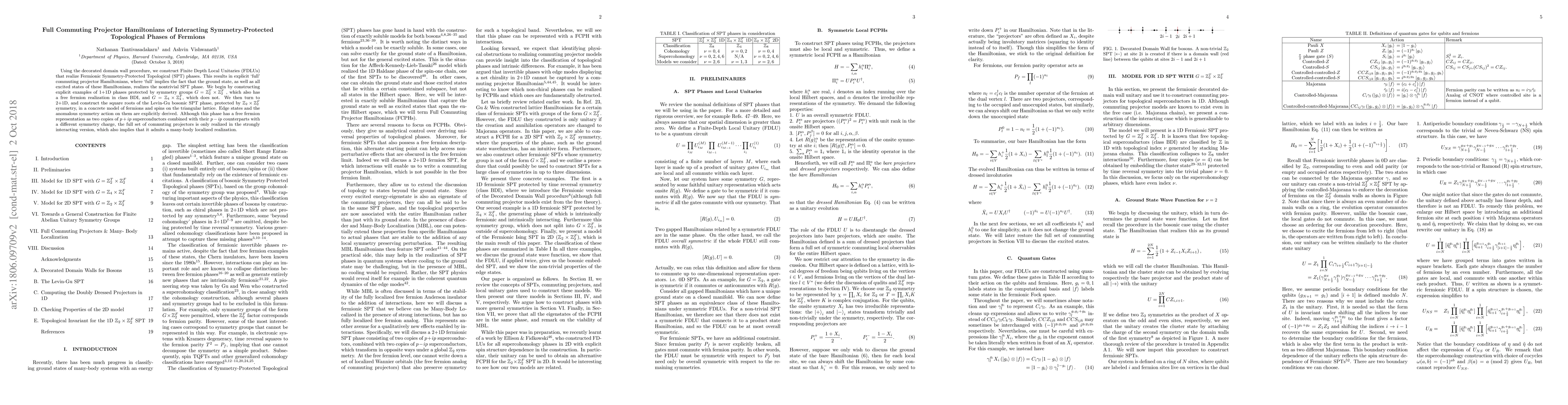 Using the decorated domain wall procedure, we construct Finite Depth Local Unitaries (FDLUs) that realize Fermionic Symmetry-Protected Topological (SPT) phases. This results in explicit 'full' commuting projector Hamiltonians, where 'full' implies the fact that the ground state, as well as all excited states of these Hamiltonians, realizes the nontrivial SPT phase. We begin by constructing explicit examples of 1+1D phases protected by symmetry groups $G=\mathbb Z_2^T \times \mathbb Z_2^F$ , which also has a free fermion realization in class BDI, and $G=\mathbb Z_4 \times \mathbb Z_4^F$, which does not. We then turn to 2+1D, and construct the square roots of the Levin-Gu bosonic SPT phase, protected by $\mathbb Z_2 \times \mathbb Z_2^F$ symmetry, in a concrete model of fermions and spins on the triangular lattice. Edge states and the anomalous symmetry action on them are explicitly derived. Although this phase has a free fermion representation as two copies of $p+ip$ superconductors combined with their $p-ip$ counterparts with a different symmetry charge, the full set of commuting projectors is only realized in the strongly interacting version, which also implies that it admits a many-body localized realization.