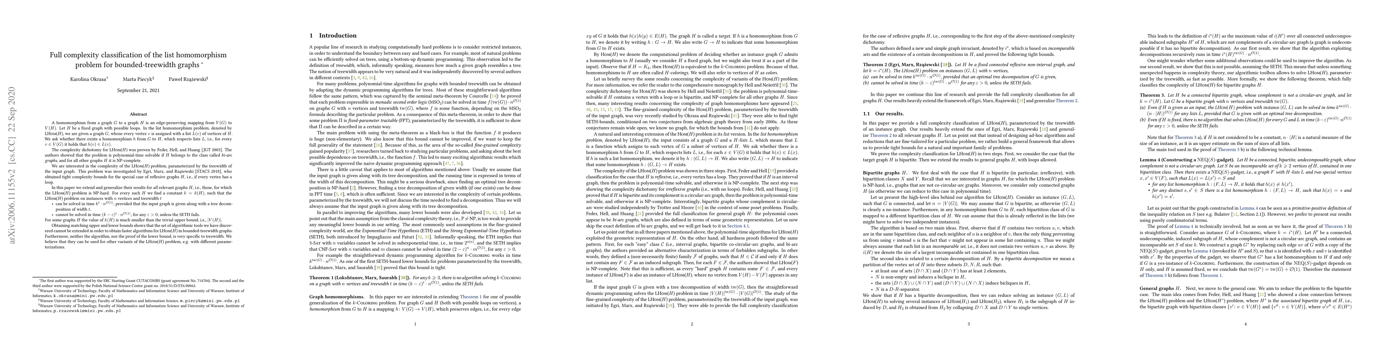 This paper classifies the complexity of the list homomorphism problem for bounded-treewidth graphs, showing that for NP-hard instances, the problem can be solved in time $k^{t} \cdot n^{\mathcal{O}(1)}$ with a given tree decomposition, while proving no faster algorithm exists unless the Strong Exponential Time Hypothesis (SETH) fails.