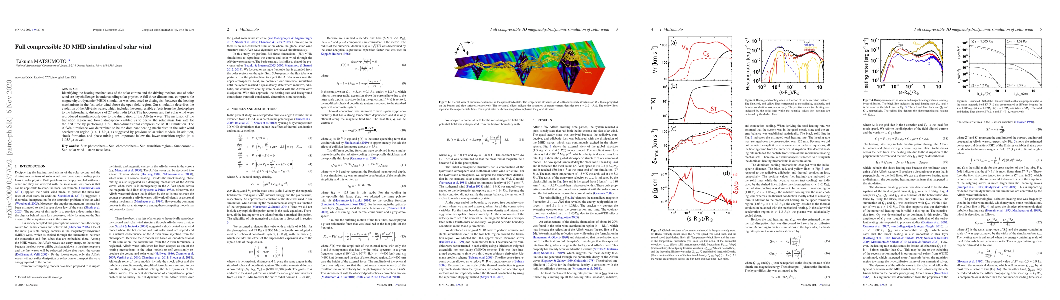 This paper presents a full 3D compressible MHD simulation to identify heating mechanisms in the solar corona and driving forces in the solar wind, finding Alfvén wave dissipation as the primary heating mechanism above 1.3 solar radii. The study also highlights shock formation and phase mixing as significant factors below 1.03 solar radii.