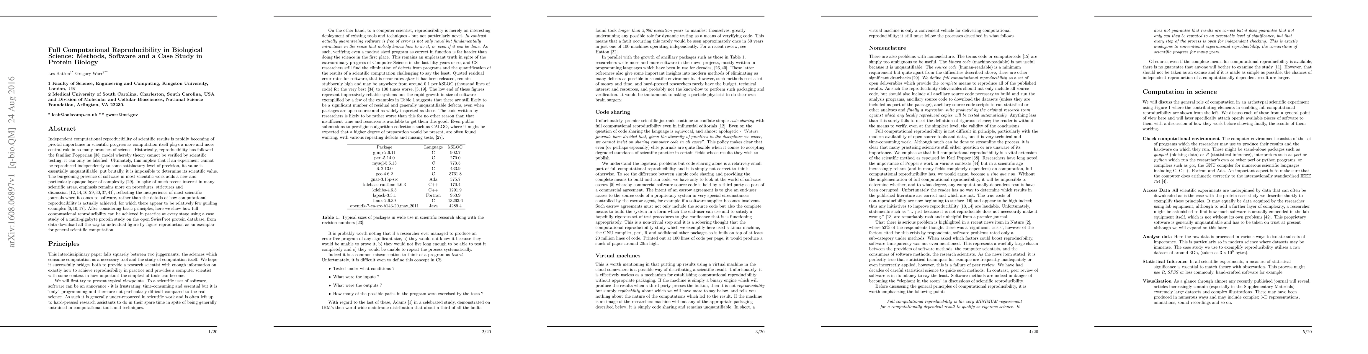 Researchers demonstrate a method for achieving full computational reproducibility in biological science, from data download to individual figure reproduction, using a case study on the SwissProt protein database.