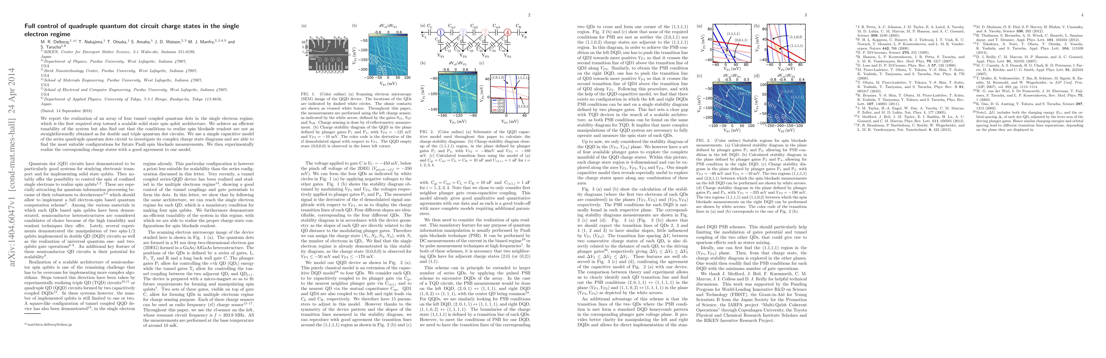 This research demonstrates control over an array of four tunnel-coupled quantum dots in the single electron regime, essential for scalable solid-state spin qubit architecture. Despite achieving efficient tunability, challenges in realizing spin blockade readout are highlighted, leading to the development of a simple capacitive model to identify optimal configurations for Pauli spin blockade measurements, which are experimentally validated.