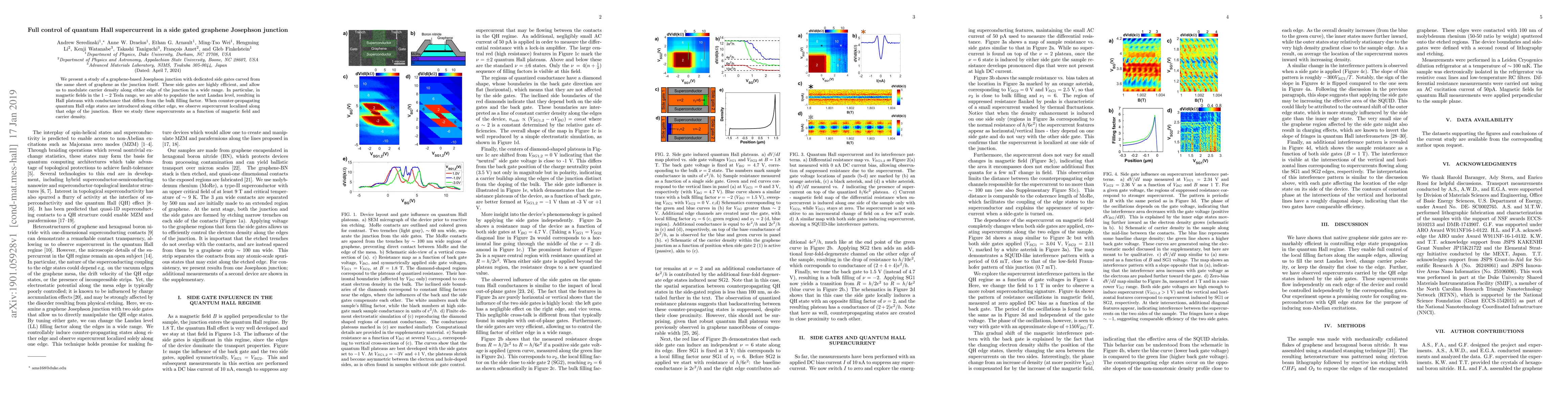 This study investigates a graphene-based Josephson junction with side gates that enable precise modulation of carrier density, allowing control over quantum Hall supercurrents. The research demonstrates the ability to populate additional Landau levels and observe localized supercurrents in magnetic fields of 1-2 Tesla.