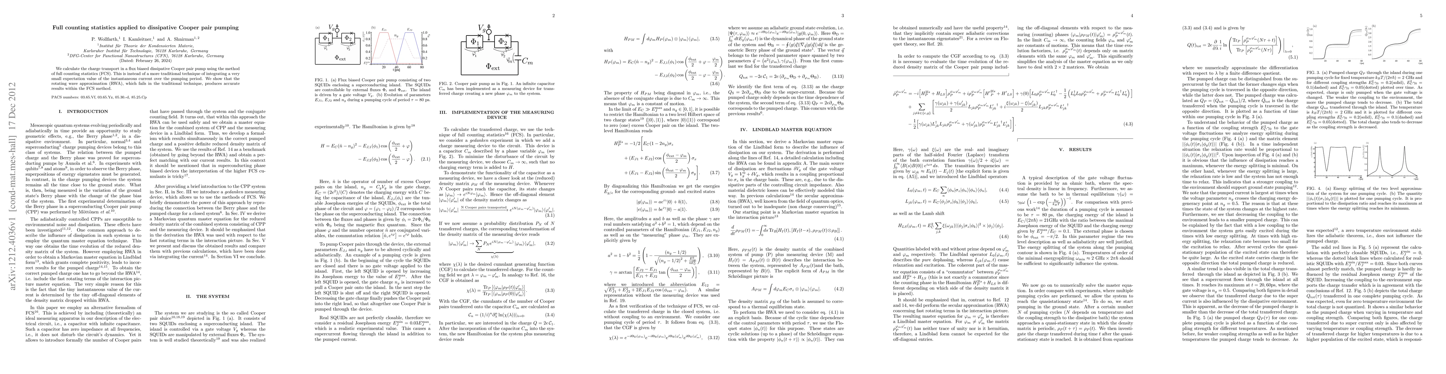 This paper employs full counting statistics to analyze charge transport in a dissipative Cooper pair pump, demonstrating that the rotating wave approximation yields accurate results, unlike traditional methods.