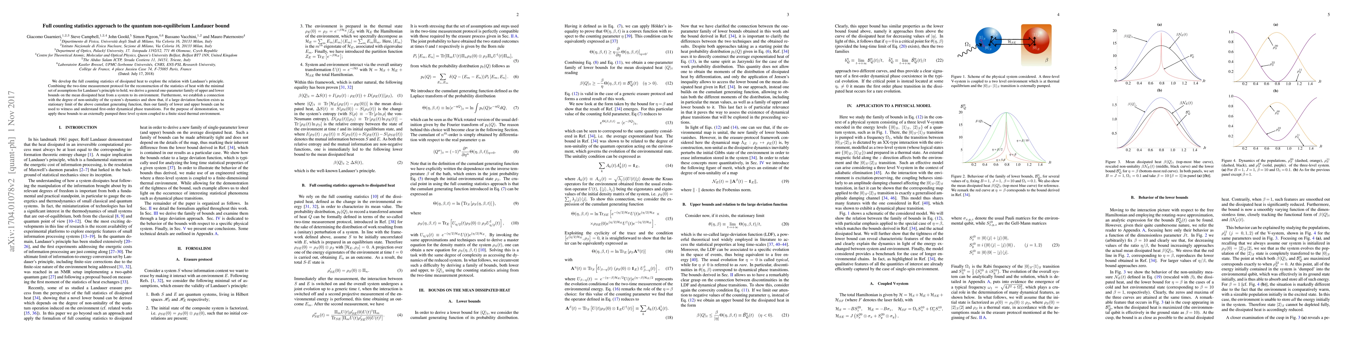 We develop the full counting statistics of dissipated heat to explore the relation with Landauer's principle. Combining the two-time measurement protocol for the reconstruction of the statistics of heat with the minimal set of assumptions for Landauer's principle to hold, we derive a general one-parameter family of upper and lower bounds on the mean dissipated heat from a system to its environment. Furthermore, we establish a connection with the degree of non-unitality of the system's dynamics and show that, if a large deviation function exists as stationary limit of the above cumulant generating function, then our family of lower and upper bounds can be used to witness and understand first-order dynamical phase transitions. For the purpose of demonstration, we apply these bounds to an externally pumped three level system coupled to a finite sized thermal environment.