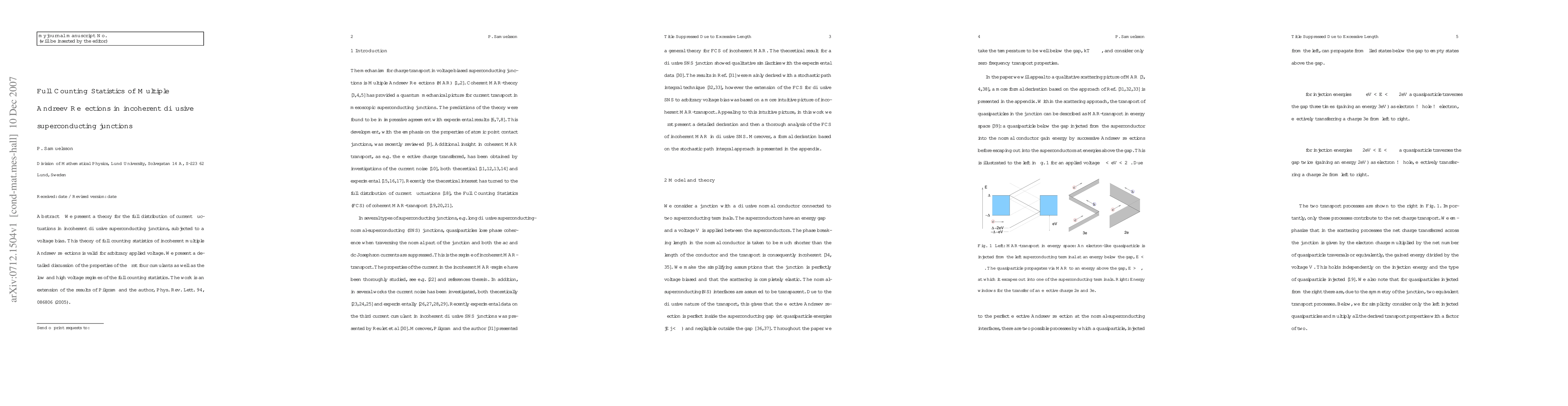 This paper develops a theoretical framework for understanding current fluctuations in diffusive superconducting junctions under voltage bias, focusing on the full counting statistics of incoherent multiple Andreev reflections. It examines the first four cumulants and analyzes both low and high voltage regimes, extending prior work by Pilgram and the author.