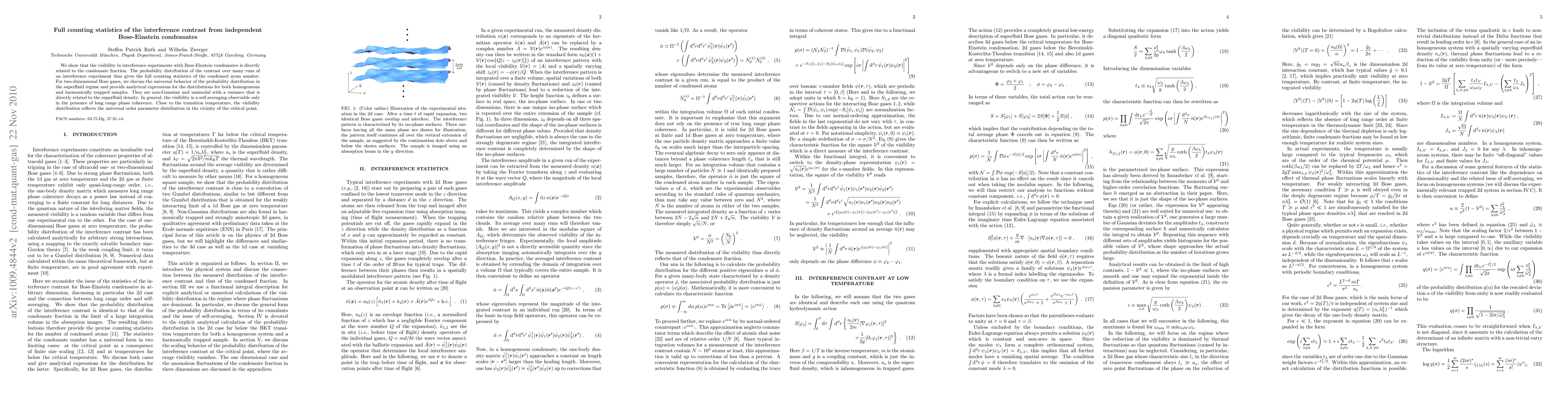We show that the visibility in interference experiments with Bose-Einstein condensates is directly related to the condensate fraction. The probability distribution of the contrast over many runs of an interference experiment thus gives the full counting statistics of the condensed atom number. For two-dimensional Bose gases, we discuss the universal behavior of the probability distribution in the superfluid regime and provide analytical expressions for the distributions for both homogeneous and harmonically trapped samples. They are non-Gaussian and unimodal with a variance that is directly related to the superfluid density. In general, the visibility is a self-averaging observable only in the presence of long range phase coherence. Close to the transition temperature, the visibility distribution reflects the universal order parameter distribution in the vicinity of the critical point.