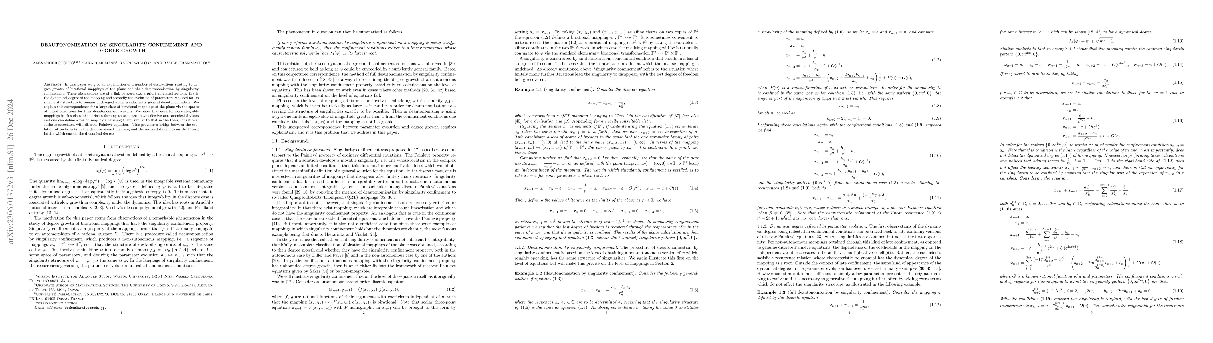 Since its introduction, the method of full deautonomisation by singularity confinement has proved a strikingly effective way of detecting the dynamical degrees of birational mappings of the plane. This method is based on an observed link between two a priori unrelated notions: firstly the dynamical degree of the mapping and secondly the evolution of parameters required for its singularity structure to remain unchanged under a sufficiently general deautonomisation. We give a proof of this conjectured correspondence for a large class of birational mappings of the plane via the spaces of initial conditions for their deautonomised versions. We show that even for non-integrable mappings in this class, the surfaces forming these spaces have effective anticanonical divisors and one can define a kind of period map similar to that in the theory of rational surfaces associated with discrete Painlev\'e equations. This provides a bridge between the evolution of coefficients in the deautonomised mapping and the induced dynamics on the Picard lattice which encode the dynamical degree.