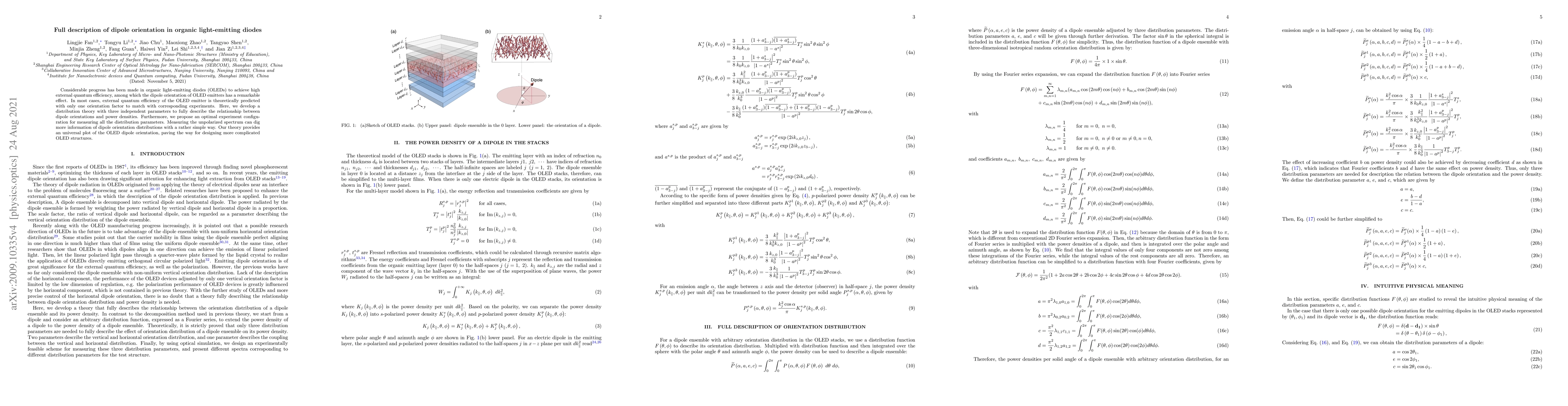This paper develops a distribution theory to fully describe the dipole orientation in organic light-emitting diodes (OLEDs) using three independent parameters, offering a more accurate prediction of external quantum efficiency (EQE). It also proposes an optimal experimental setup for measuring dipole orientation distributions through unpolarized spectrum analysis.
