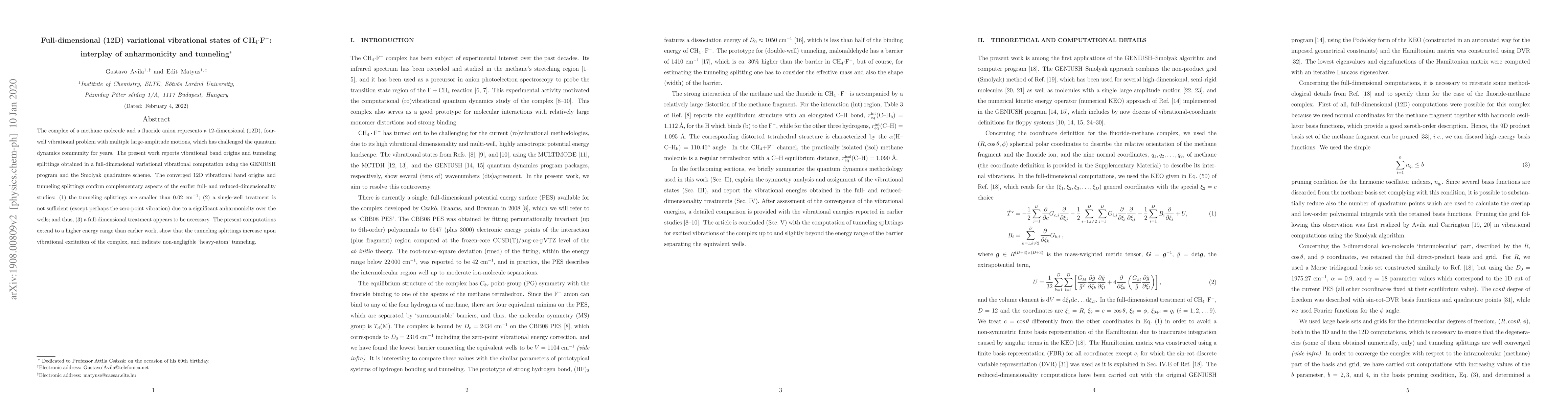 Researchers have calculated the vibrational states of a methane-fluoride complex using 12-dimensional variational methods, confirming that full-dimensional treatment is necessary due to anharmonicity and tunneling effects.