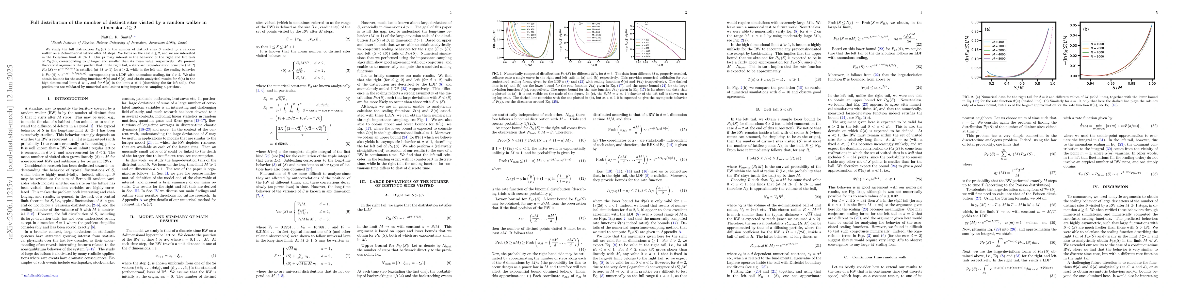 This research investigates the distribution of distinct sites visited by a random walker on a d-dimensional lattice after M steps, focusing on d >= 2 and long-time limits. It predicts standard large deviation principles for right tails and anomalous scaling for left tails, providing bounds and analytical results for scaling functions. The findings are supported by numerical simulations.