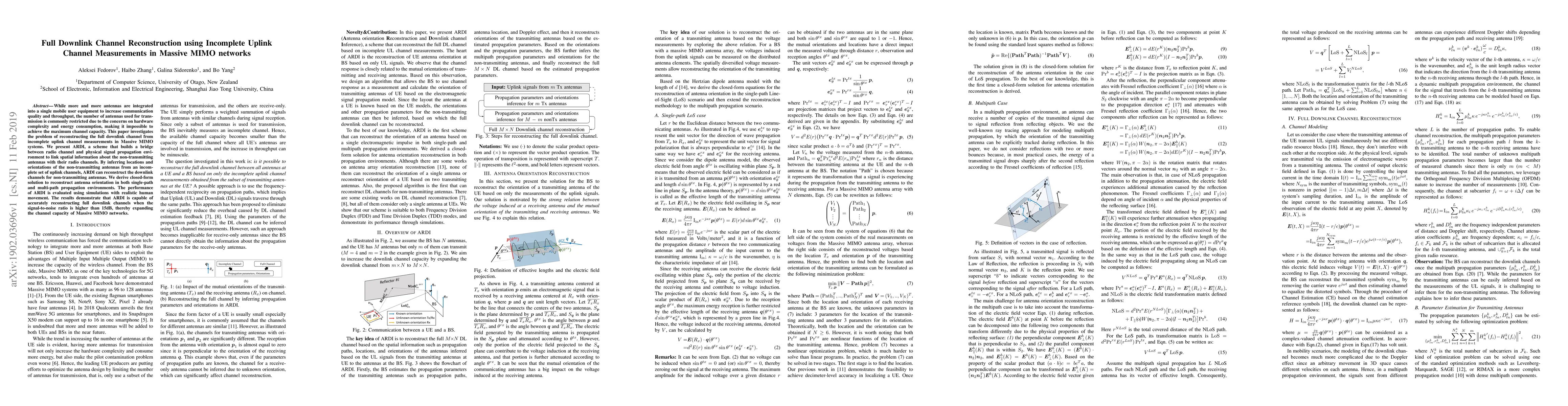 While more and more antennas are integrated into single mobile user equipment to increase communication quality and throughput, the number of antennas used for transmission is commonly restricted due to the concerns on hardware complexity and energy consumption, making it impossible to achieve the maximum channel capacity. This paper investigates the problem of reconstructing the full downlink channel from incomplete uplink channel measurements in Massive MIMO systems. We present ARDI, a scheme that builds a bridge between the radio channel and physical signal propagation environment to link spatial information about the non-transmitting antennas with their radio channels. By inferring locations and orientations of the non-transmitting antennas from an incomplete set of uplink channels, ARDI can reconstruct the downlink channels for non-transmitting antennas. We derive a closed-form solution to reconstruct antenna orientation in both single-path and multi-path propagation environments. The performance of ARDI is evaluated using simulations with realistic human movement. The results demonstrate that ARDI is capable of accurately reconstructing full downlink channels when the signal-to-noise ratio is higher than 15dB, thereby expanding the channel capacity of Massive MIMO networks.