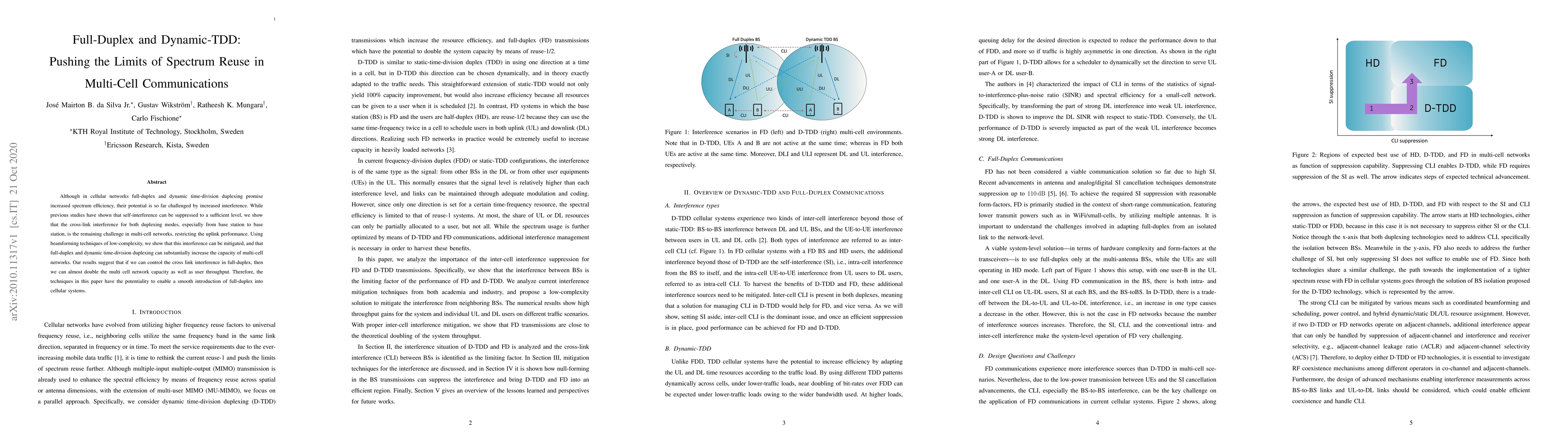 This paper investigates the use of full-duplex and dynamic-TDD to enhance spectrum efficiency in multi-cell networks, finding that cross-link interference remains a significant challenge. By employing low-complexity beamforming techniques, the authors demonstrate that this interference can be mitigated, potentially doubling network capacity and user throughput.