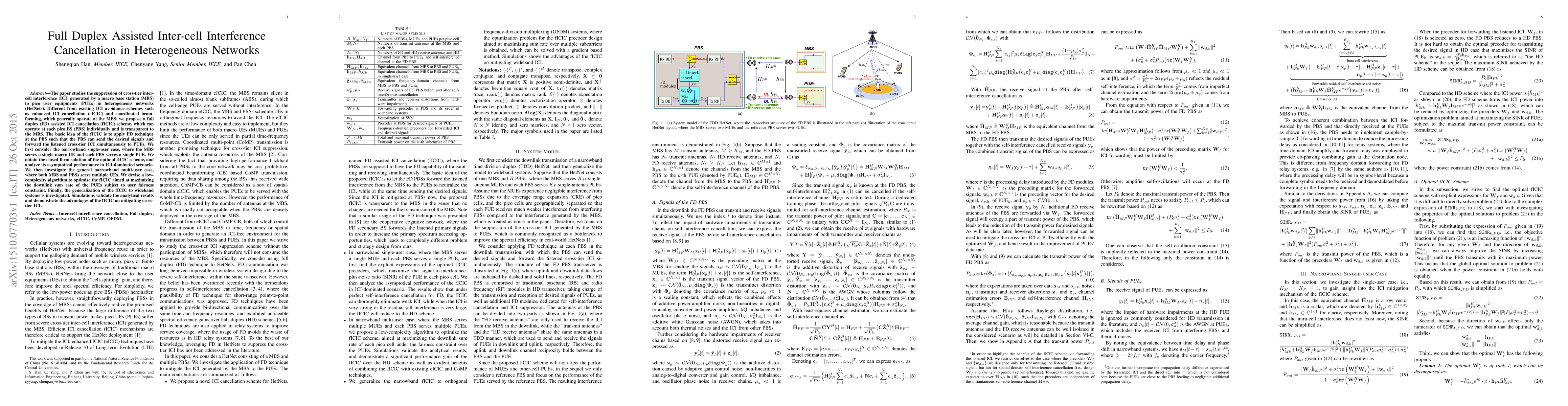 The paper studies the suppression of cross-tier inter-cell interference (ICI) generated by a macro base station (MBS) to pico user equipments (PUEs) in heterogeneous networks (HetNets). Different from existing ICI avoidance schemes such as enhanced ICI cancellation (eICIC) and coordinated beamforming, which generally operate at the MBS, we propose a full duplex (FD) assisted ICI cancellation (fICIC) scheme, which can operate at each pico BS (PBS) individually and is transparent to the MBS. The basic idea of the fICIC is to apply FD technique at the PBS such that the PBS can send the desired signals and forward the listened cross-tier ICI simultaneously to PUEs. We first consider the narrowband single-user case, where the MBS serves a single macro UE and each PBS serves a single PUE. We obtain the closed-form solution of the optimal fICIC scheme, and analyze its asymptotical performance in ICI-dominated scenario. We then investigate the general narrowband multi-user case, where both MBS and PBSs serve multiple UEs. We devise a low-complexity algorithm to optimize the fICIC aimed at maximizing the downlink sum rate of the PUEs subject to user fairness constraint. Finally, the generalization of the fICIC to wideband systems is investigated. Simulations validate the analytical results and demonstrate the advantages of the fICIC on mitigating cross-tier ICI.