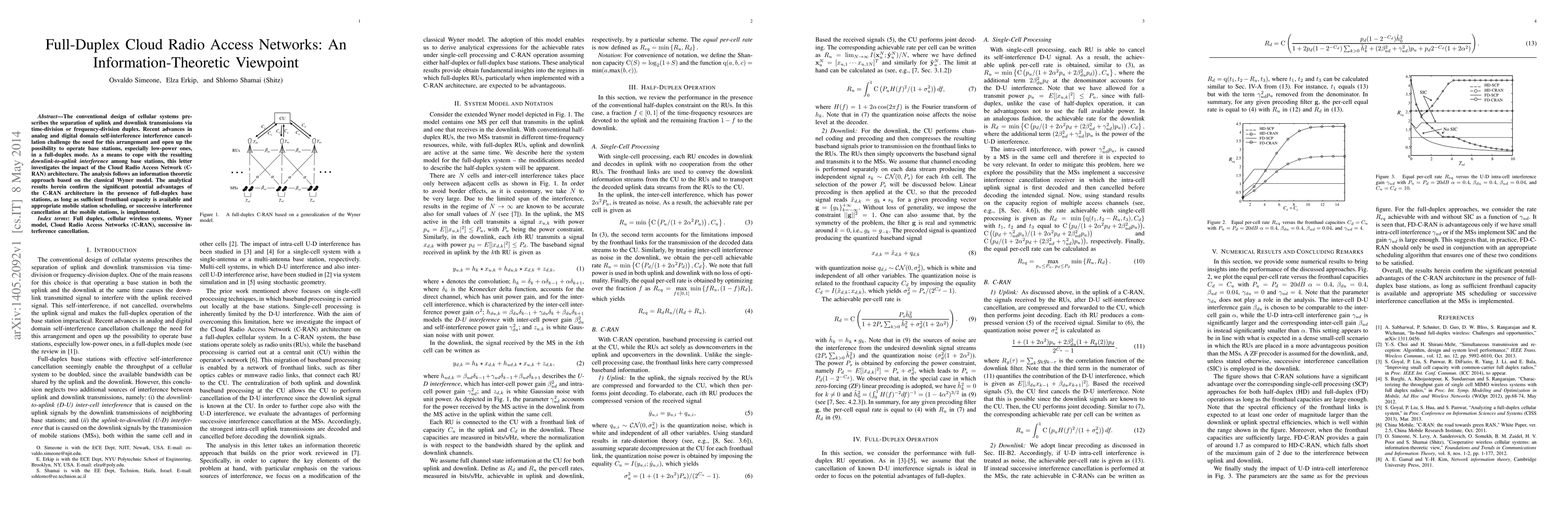 This paper explores the benefits of full-duplex base stations within Cloud Radio Access Networks (C-RAN) from an information-theoretic perspective. It finds that C-RAN can significantly mitigate interference issues, provided there is adequate fronthaul capacity and effective mobile station scheduling or cancellation techniques are used.