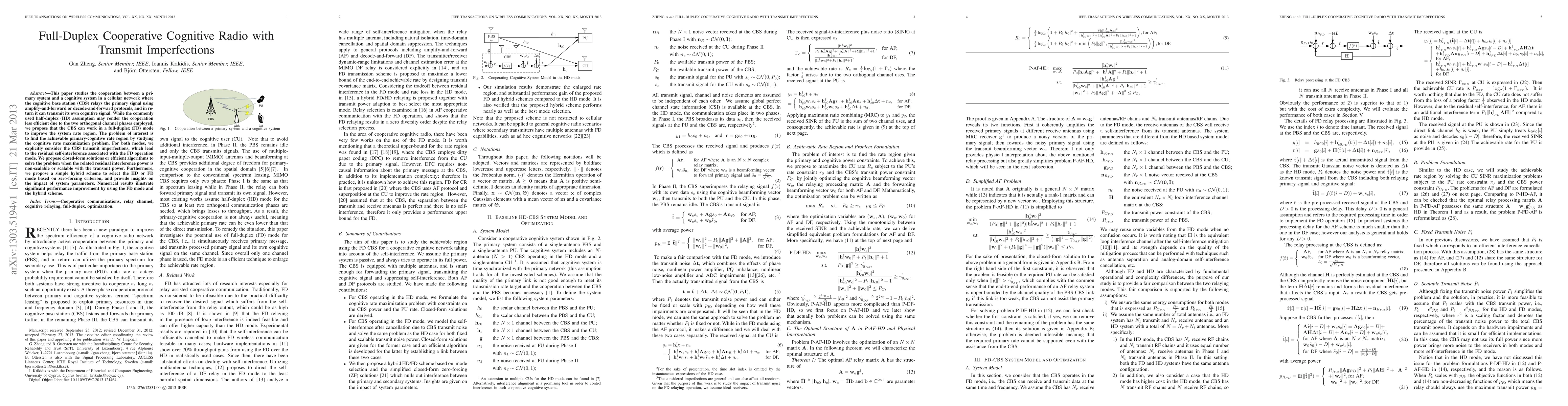 This research demonstrates that using full-duplex communication in cognitive radio networks, despite transmit imperfections, can significantly enhance system performance compared to traditional half-duplex methods. It offers solutions and a hybrid approach to optimize primary and cognitive data rates effectively.