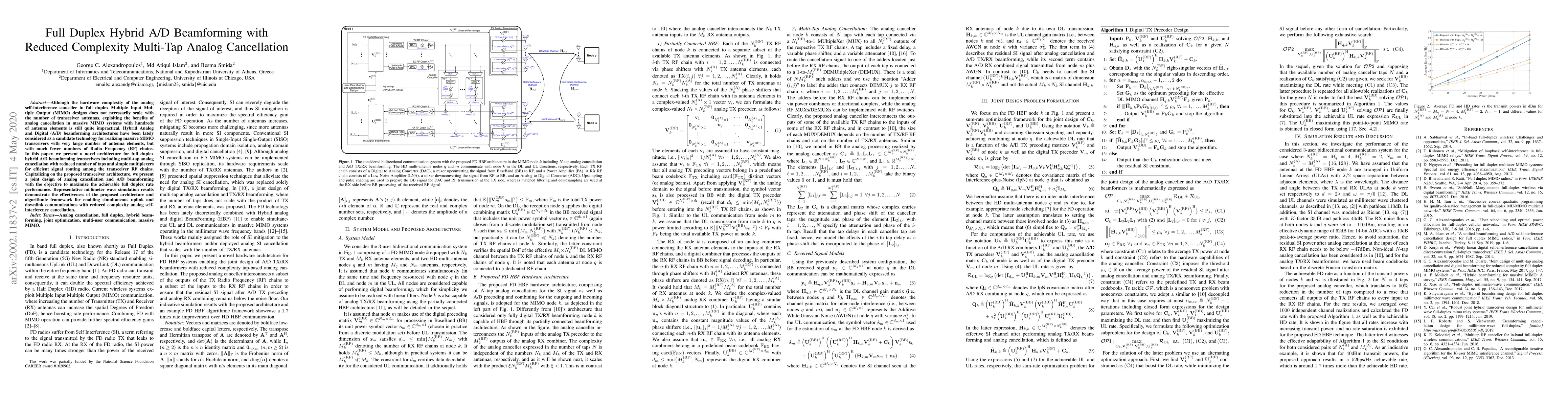 A novel hybrid transceiver design is proposed, combining analog cancellation and digital beamforming for full-duplex wireless communication systems.