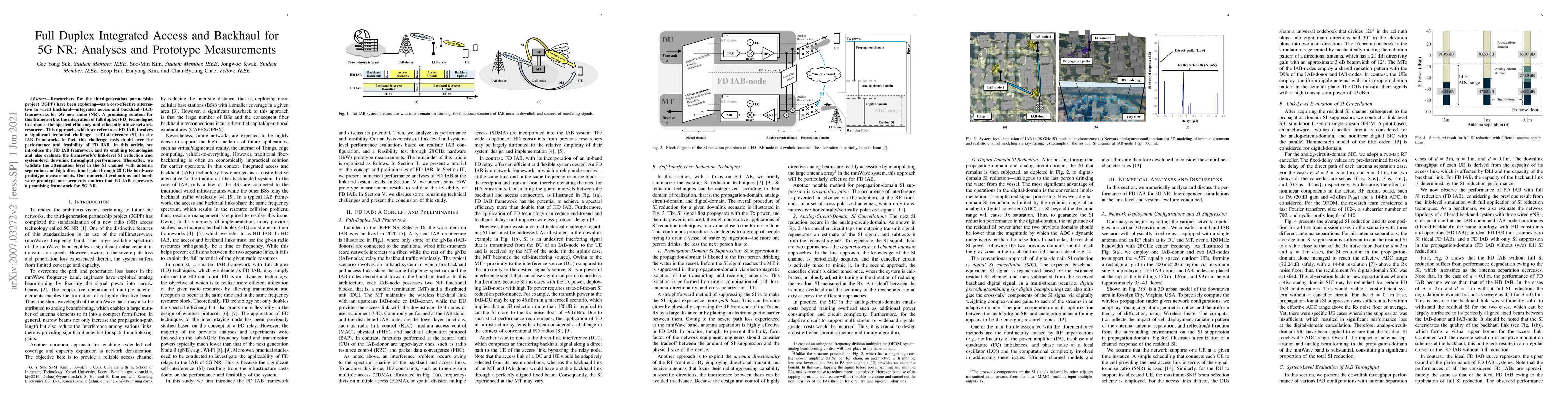 This paper investigates the feasibility of full duplex integrated access and backhaul (FD IAB) for 5G NR, addressing self-interference challenges through numerical evaluations and hardware prototype measurements at 28 GHz, confirming its potential as a cost-effective alternative to wired backhaul.
