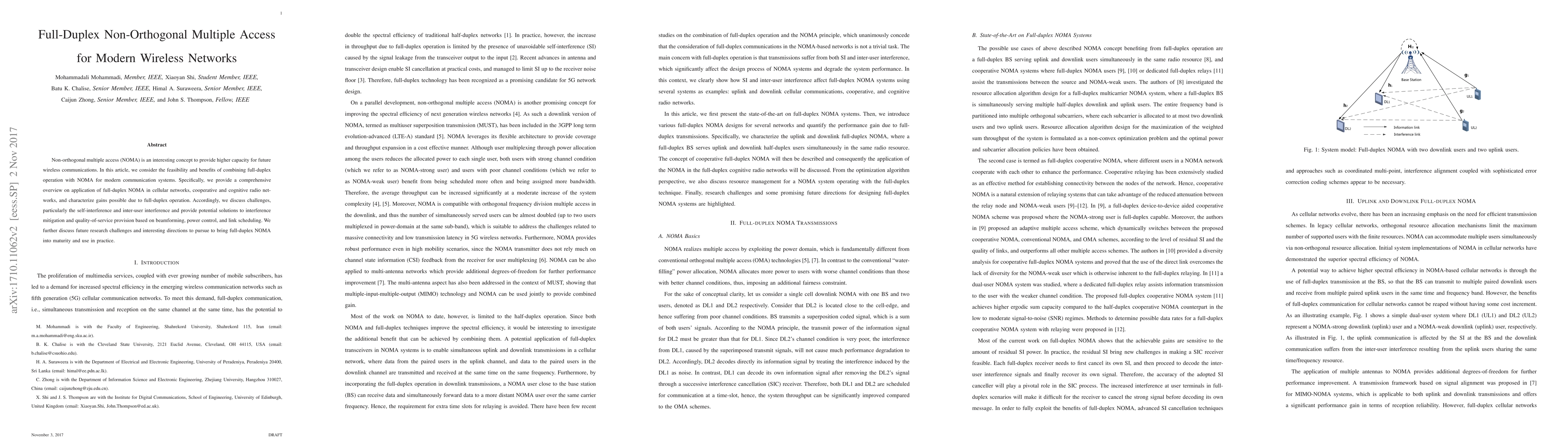This paper explores the integration of full-duplex operation with non-orthogonal multiple access (NOMA) to enhance capacity in modern wireless networks, detailing its application across various network types and addressing challenges like self-interference and inter-user interference through techniques like beamforming and power control. Future research directions are also proposed to advance full-duplex NOMA implementation.