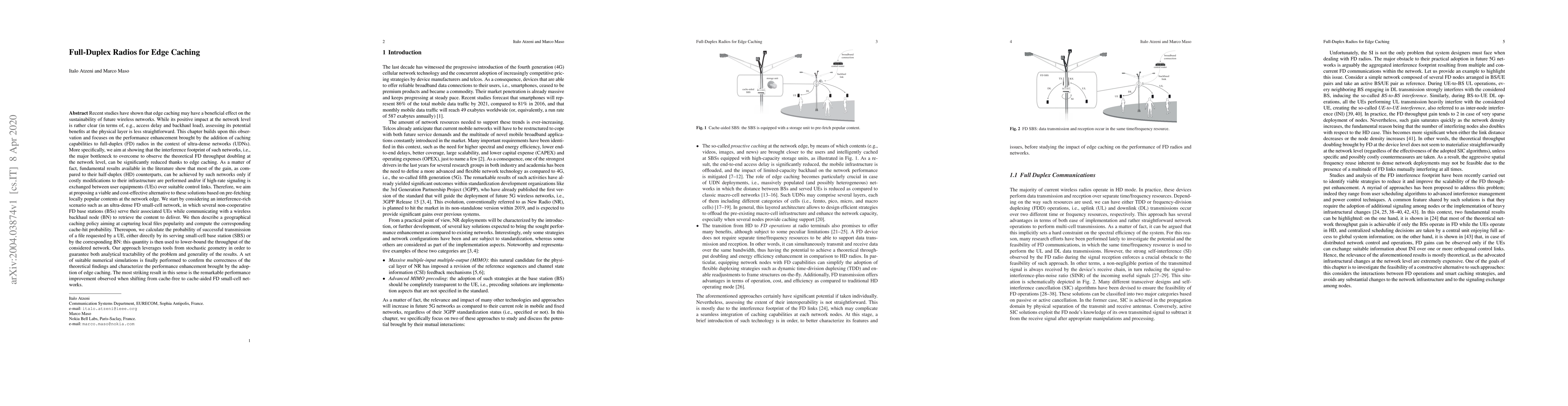 This paper shows that adding caching capabilities to full-duplex radios in ultra-dense networks can significantly reduce interference and improve performance, offering a cost-effective alternative to costly modifications or high-rate signaling.