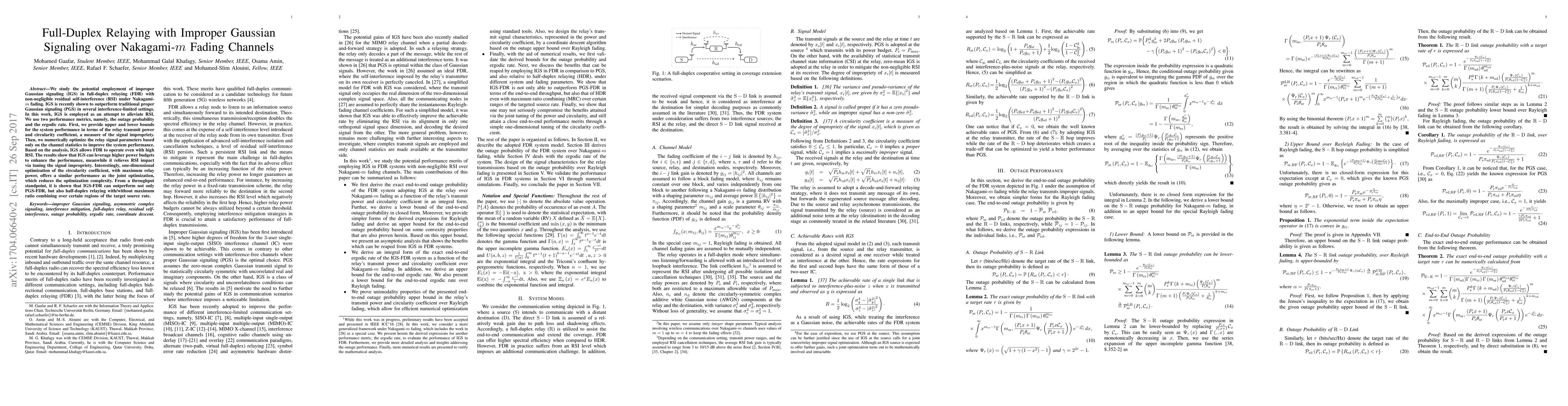 This paper investigates the use of improper Gaussian signaling (IGS) in full-duplex relaying (FDR) to mitigate residual self-interference (RSI) under Nakagami-m fading. It demonstrates that IGS can enhance performance by leveraging higher power and tuning signal impropriety, achieving better outage probability and ergodic rate compared to traditional proper Gaussian signaling (PGS).
