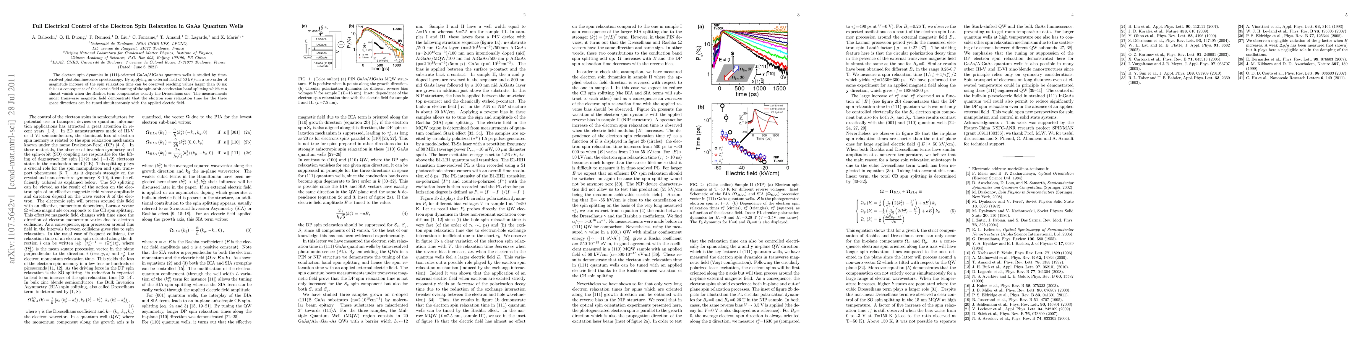 This study demonstrates full electrical control over electron spin relaxation in GaAs/AlGaAs quantum wells, showing a two-order-of-magnitude increase in spin relaxation time via an external electric field, enabling tuning of spin-orbit interaction and spin relaxation times in three spatial directions.