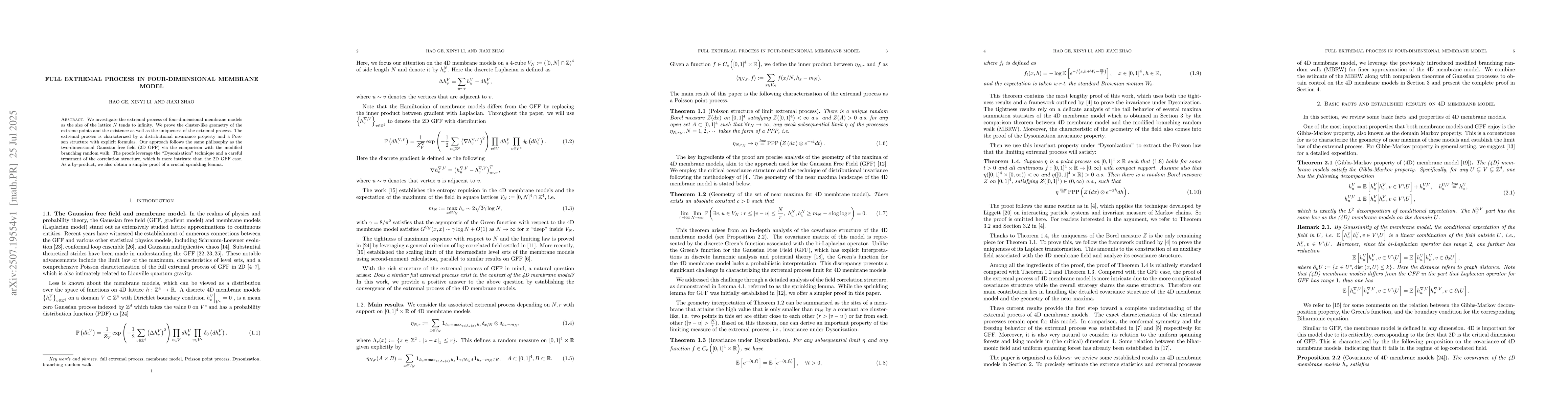 We investigate the extremal process of four-dimensional membrane models as the size of the lattice $N$ tends to infinity. We prove the cluster-like geometry of the extreme points and the existence as well as the uniqueness of the extremal process. The extremal process is characterized by a distributional invariance property and a Poisson structure with explicit formulas. Our approach follows the same philosophy as the two-dimensional Gaussian free field (2D GFF) via the comparison with the modified branching random walk. The proofs leverage the ``Dysonization'' technique and a careful treatment of the correlation structure, which is more intricate than the 2D GFF case. As a by-product, we also obtain a simpler proof of a crucial sprinkling lemma.