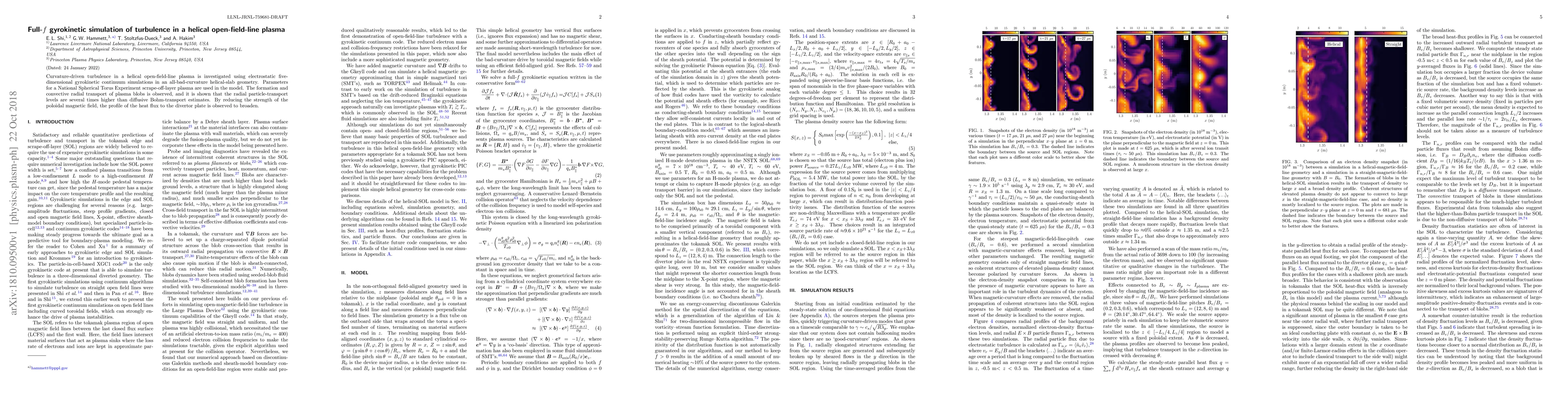 Curvature-driven turbulence in a helical open-field-line plasma is investigated using electrostatic five-dimensional gyrokinetic continuum simulations in an all-bad-curvature helical-slab geometry. Parameters for a National Spherical Torus Experiment scrape-off-layer plasma are used in the model. The formation and convective radial transport of plasma blobs is observed, and it is shown that the radial particle-transport levels are several times higher than diffusive Bohm-transport estimates. By reducing the strength of the poloidal magnetic field, the profile of the heat flux to the divertor plate is observed to broaden.