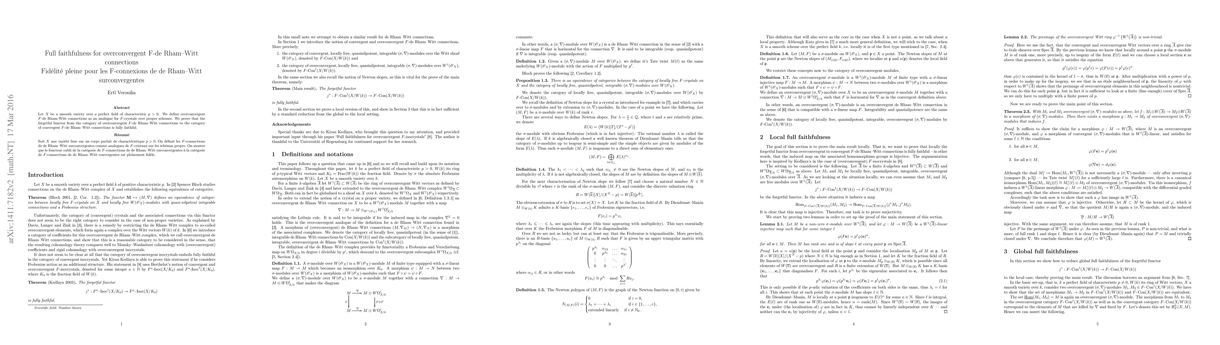 This paper introduces overconvergent F-de Rham-Witt connections as an analogue for F-crystals, proving that the functor mapping them to convergent F-de Rham-Witt connections is fully faithful, mirroring techniques used for overconvergent F-isocrystals.