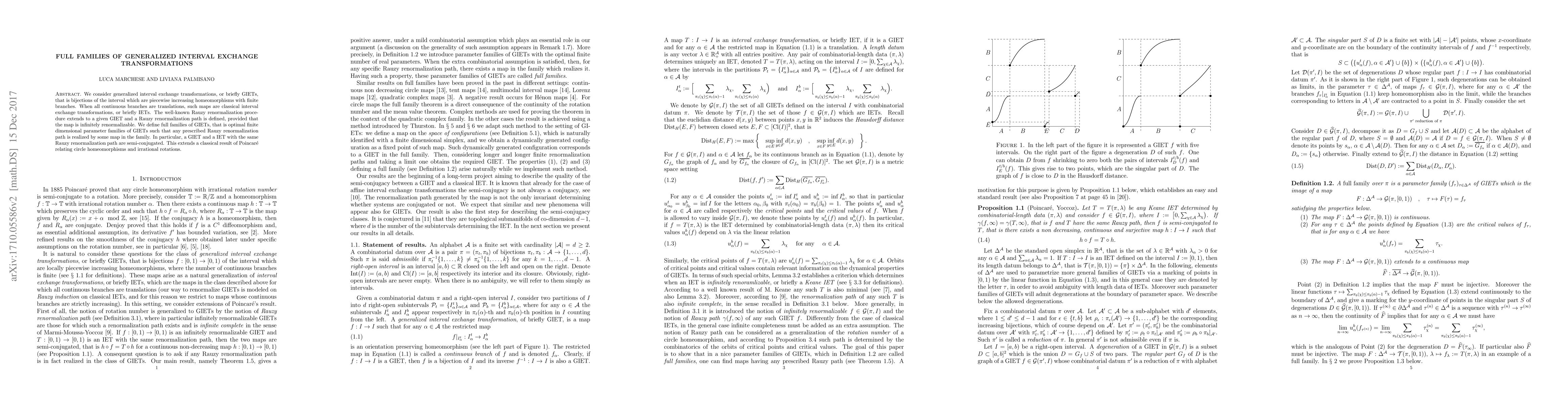This paper defines full families of generalized interval exchange transformations (GIETs), which are optimal parameter families realizing any prescribed Rauzy renormalization path. It extends the classical result of Poincaré relating circle homeomorphisms and irrational rotations, showing that GIETs and interval exchange transformations (IETs) with the same renormalization path are semi-conjugated.