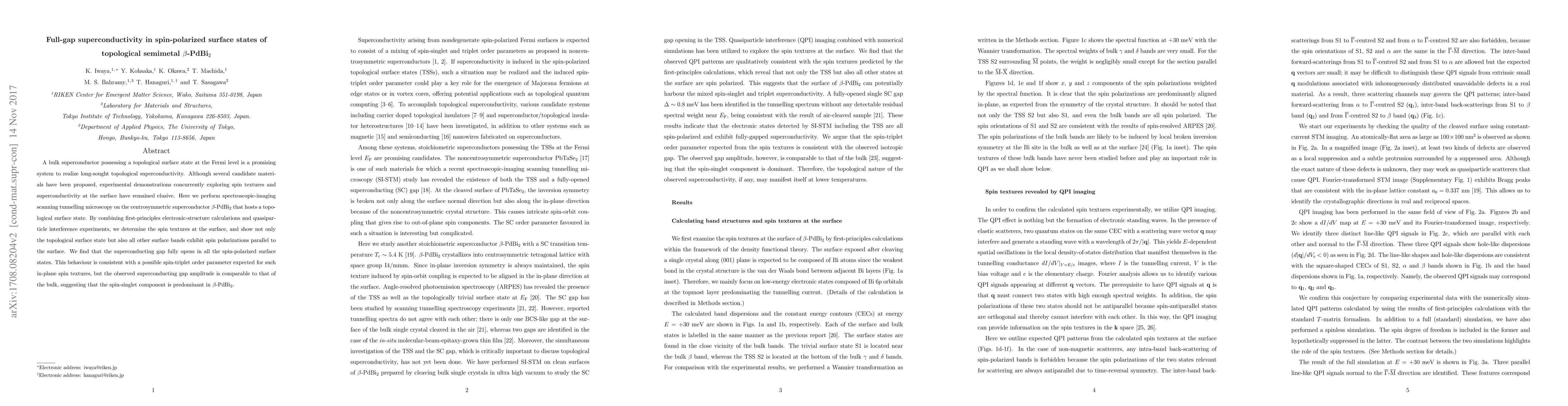 Researchers studied topological semimetal $eta$-PdBi$_2$, discovering that its surface states exhibit full-gap superconductivity with spin textures that fully open the superconducting gap in all bands.