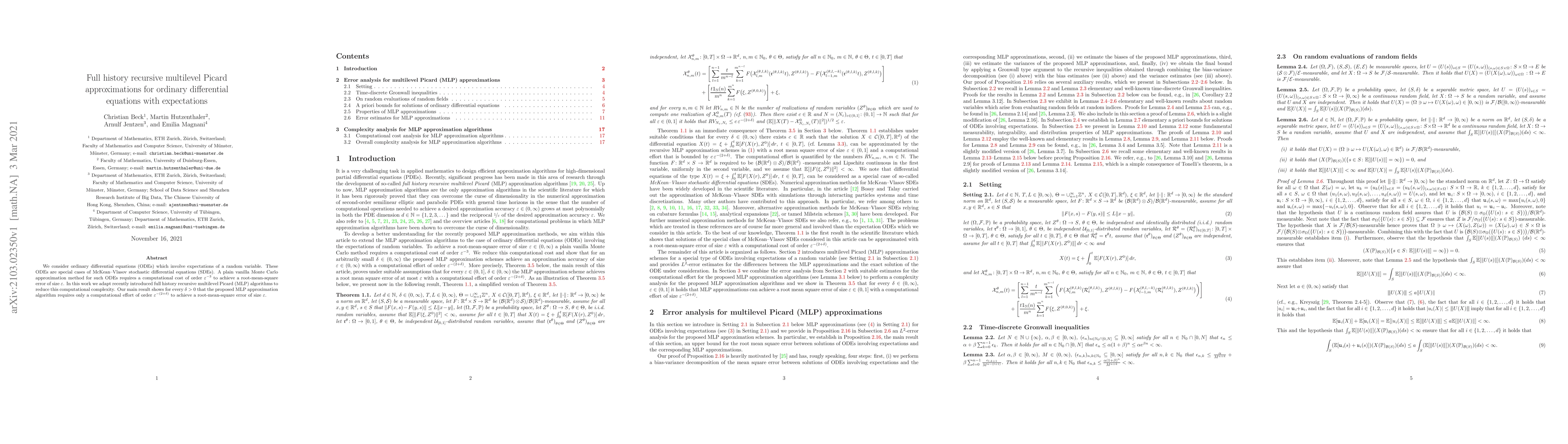 This paper proposes a novel full history recursive multilevel Picard approximation algorithm to solve ordinary differential equations involving expectations of random variables, significantly reducing computational complexity from $\varepsilon^{-3}$ to $\varepsilon^{-(2+\delta)}$ for achieving a root-mean-square error of size $\varepsilon$.