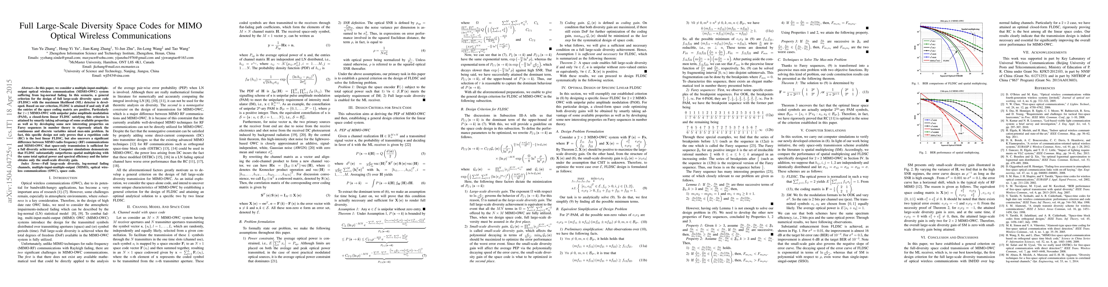 This paper develops a criterion for designing full large-scale diversity space codes (FLDSC) for MIMO optical wireless communication systems, showing that a repetition code is the optimal linear FLDSC for $2\times 2$ MIMO-OWC with unipolar PAM. It reveals that space-only transmission suffices for full diversity in MIMO-OWC, unlike MIMO RF communications.