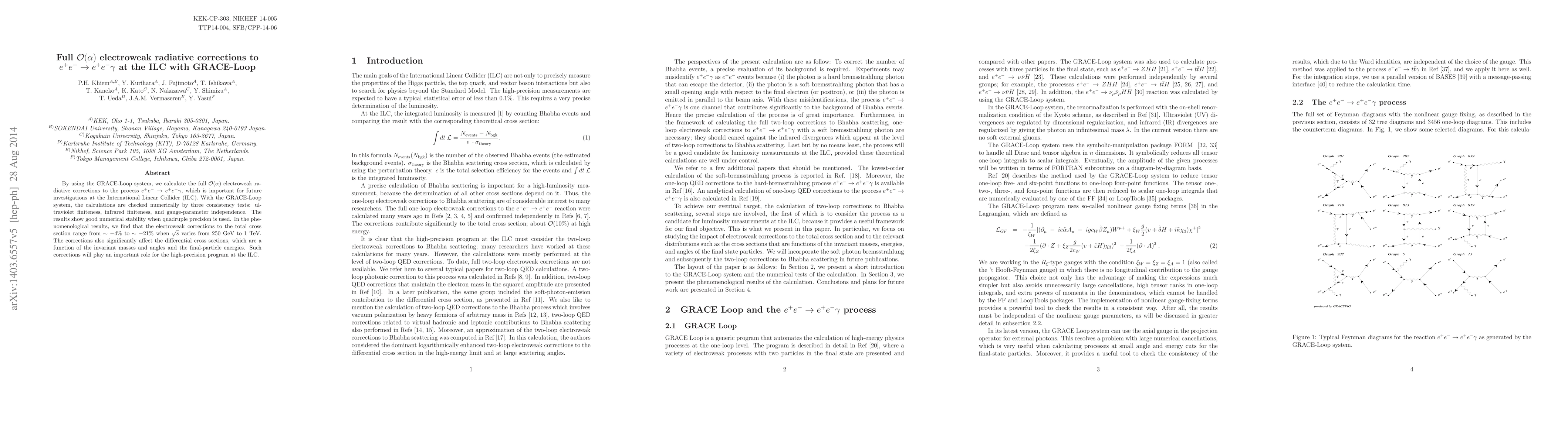 This paper calculates full $\mathcal{O}(\alpha)$ electroweak radiative corrections for the process $e^+e^- \rightarrow e^+e^- \gamma$ using the GRACE-Loop system, finding corrections ranging from $\sim -4\%$ to $\sim -21\%$ over the energy range $250$ GeV to $1$ TeV, which are crucial for high-precision measurements at the International Linear Collider (ILC).
