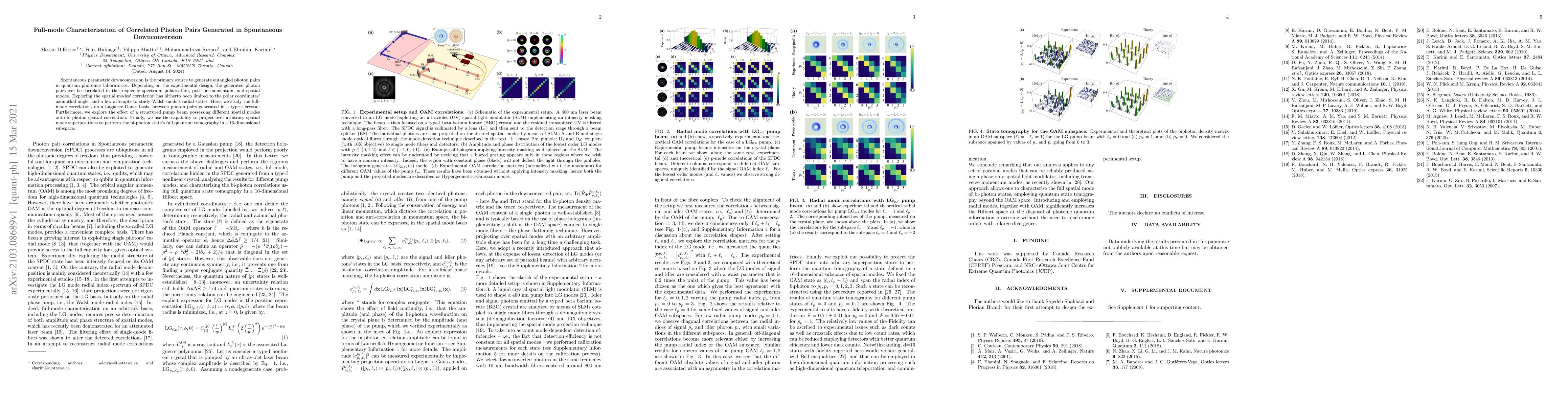 This paper investigates the full-mode correlation of entangled photon pairs generated via spontaneous parametric downconversion in a type-I crystal, focusing on Laguerre-Gauss modes and exploring the impact of structured pump beams. It achieves full quantum tomography of the bi-photon state in a 16-dimensional subspace.