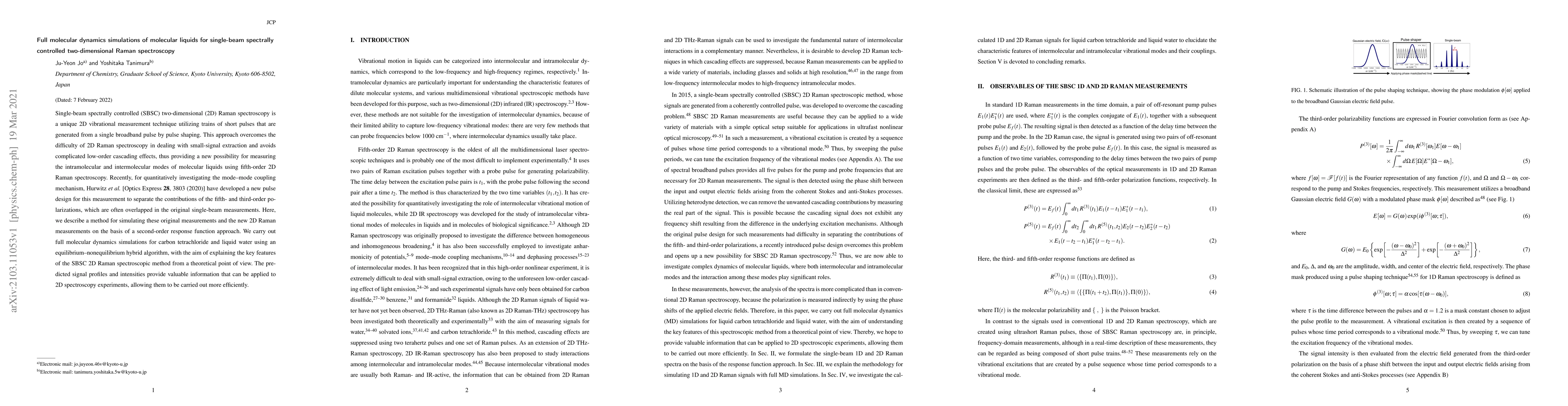 Single-beam spectrally controlled (SBSC) two-dimensional (2D) Raman spectroscopy is a unique 2D vibrational measurement technique utilizing trains of short pulses that are generated from a single broadband pulse by pulse shaping. This approach overcomes the difficulty of 2D Raman spectroscopy in dealing with small-signal extraction and avoids complicated low-order cascading effects, thus providing a new possibility for measuring the intramolecular and intermolecular modes of molecular liquids using fifth-order 2D Raman spectroscopy. Recently, for quantitatively investigating the mode-mode coupling mechanism, Hurwitz et al. [Optics Express 28, 3803 (2020)] have developed a new pulse design for this measurement to separate the contributions of the fifth- and third-order polarizations, which are often overlapped in the original single-beam measurements. Here, we describe a method for simulating these original measurements and the new 2D Raman measurements on the basis of a second-order response function approach. We carry out full molecular dynamics simulations for carbon tetrachloride and liquid water using an equilibrium-nonequilibrium hybrid algorithm, with the aim of explaining the key features of the SBSC 2D Raman spectroscopic method from a theoretical point of view. The predicted signal profiles and intensities provide valuable information that can be applied to 2D spectroscopy experiments, allowing them to be carried out more efficiently.