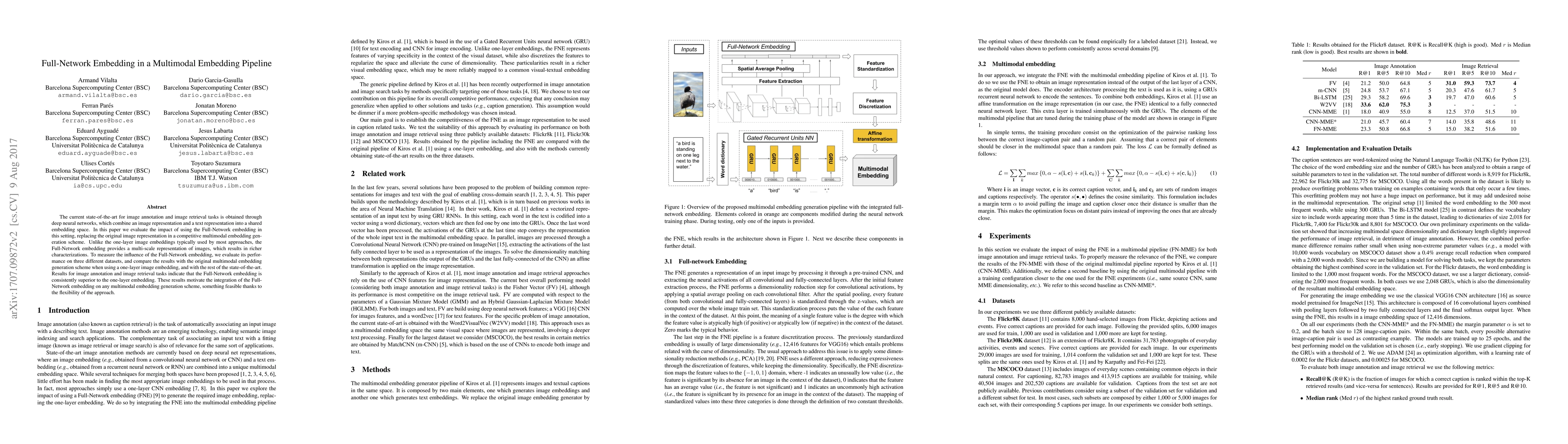 This paper evaluates the Full-Network embedding for multimodal embedding generation, showing it provides a richer multi-scale representation compared to one-layer image embeddings. Experiments on three datasets demonstrate superior performance in image annotation and retrieval tasks, suggesting its integration into existing multimodal schemes.