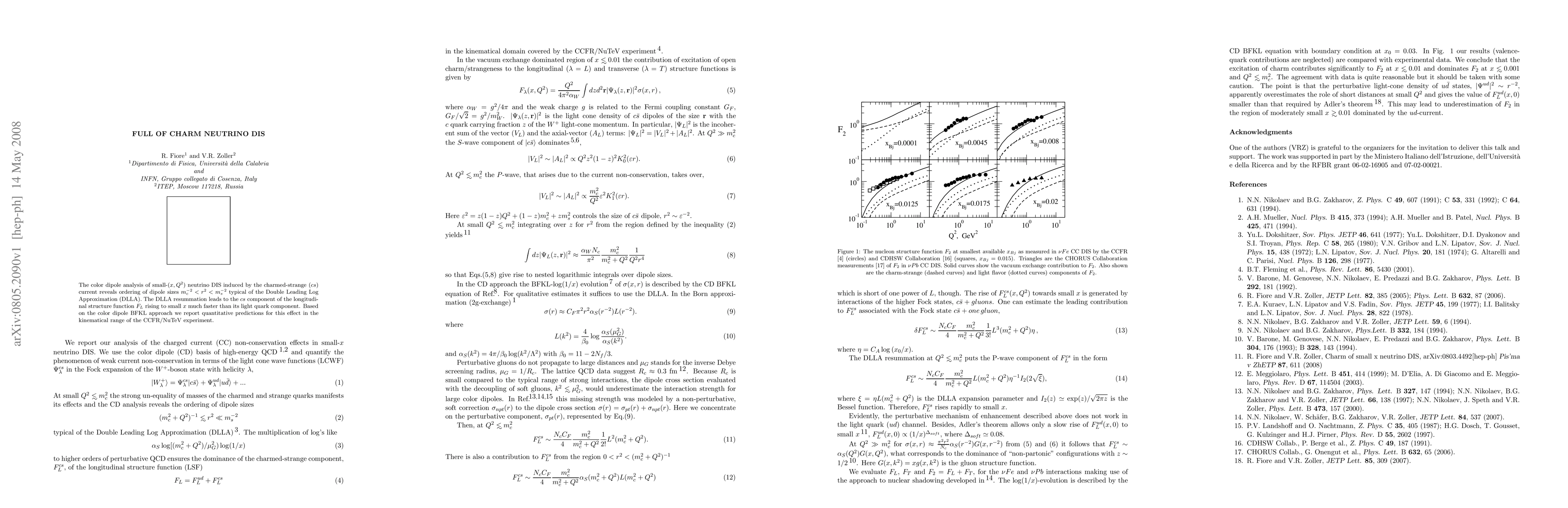 This paper uses the color dipole analysis to study small-$(x, Q^2)$ neutrino deep inelastic scattering (DIS) driven by the charmed-strange current, predicting that the $cs$ component of the longitudinal structure function rises faster than its light quark counterpart due to Double Leading Log Approximation (DLLA) effects, with implications for the CCFR/NuTeV experiment.