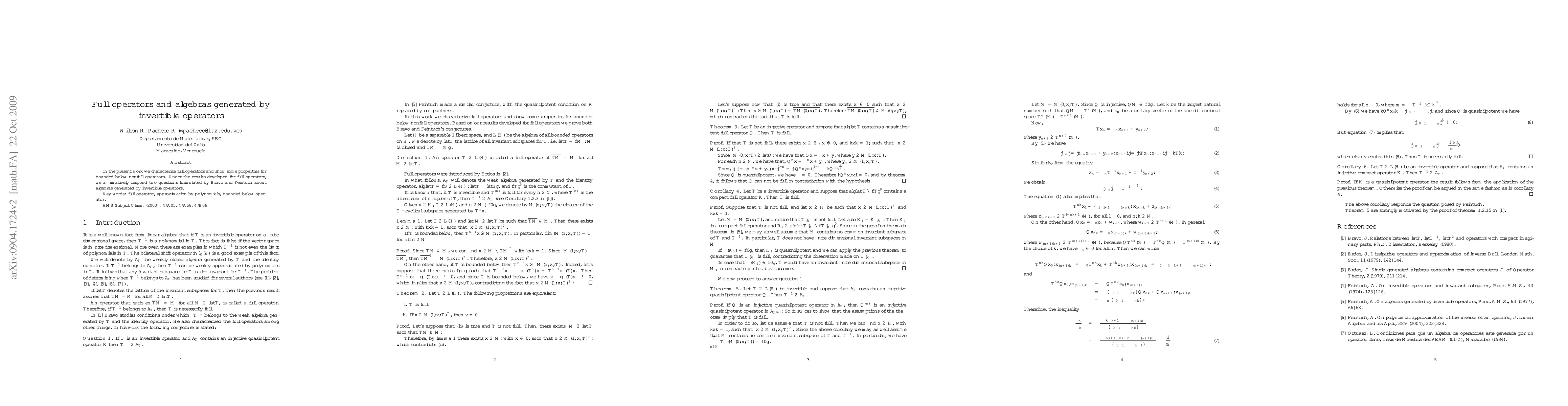 In the present work we characterized full operators and we showed some properties that have nonfull injectives operators. With the results developed for full operators, we affirmatively respond two questions formulated by Bravo and Feintuch on when the inverse of an operator can be weakly approximated by polynomials in the operator