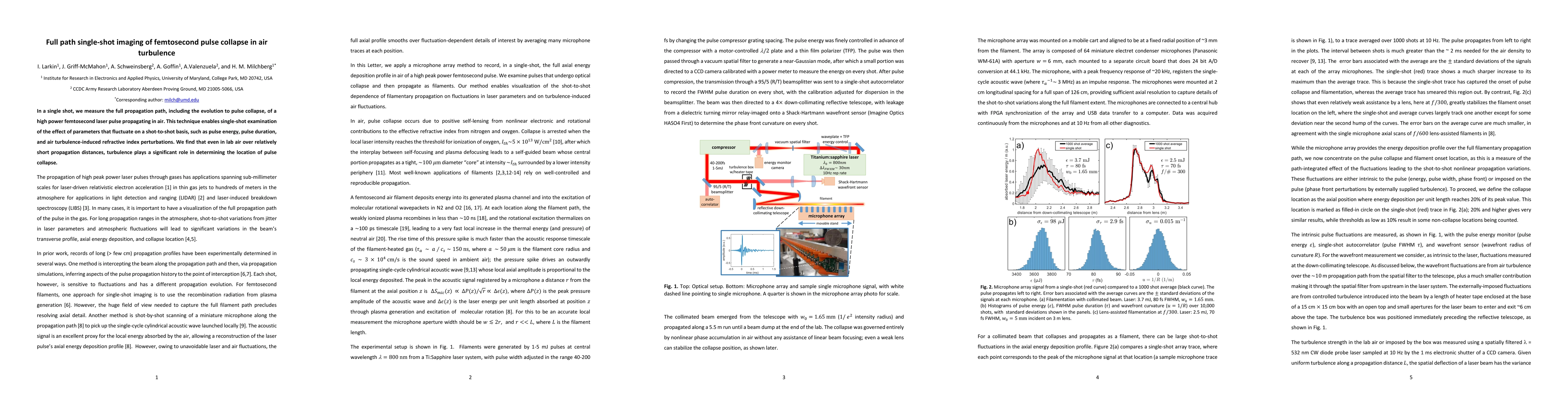 Researchers developed a technique to measure the full path of a femtosecond laser pulse in air turbulence, revealing that even short distances can cause significant effects on pulse collapse. The study enables single-shot examination of fluctuating parameters.
