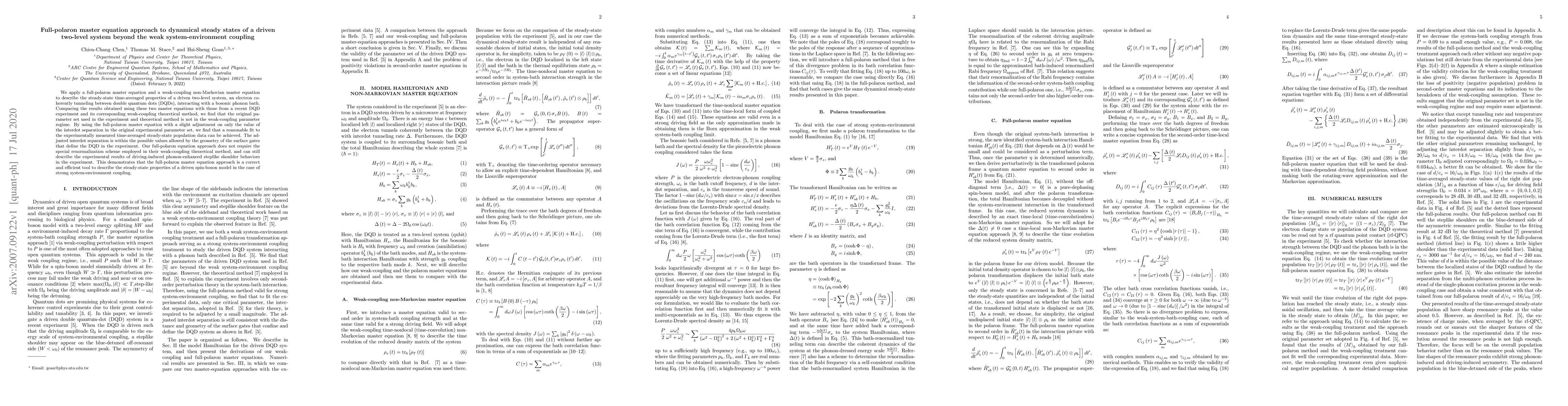 This paper uses a full-polaron master equation to describe the steady-state properties of a driven two-level system beyond weak coupling, showing it can fit experimental data better than a weak-coupling method, demonstrating its effectiveness for strong coupling scenarios.