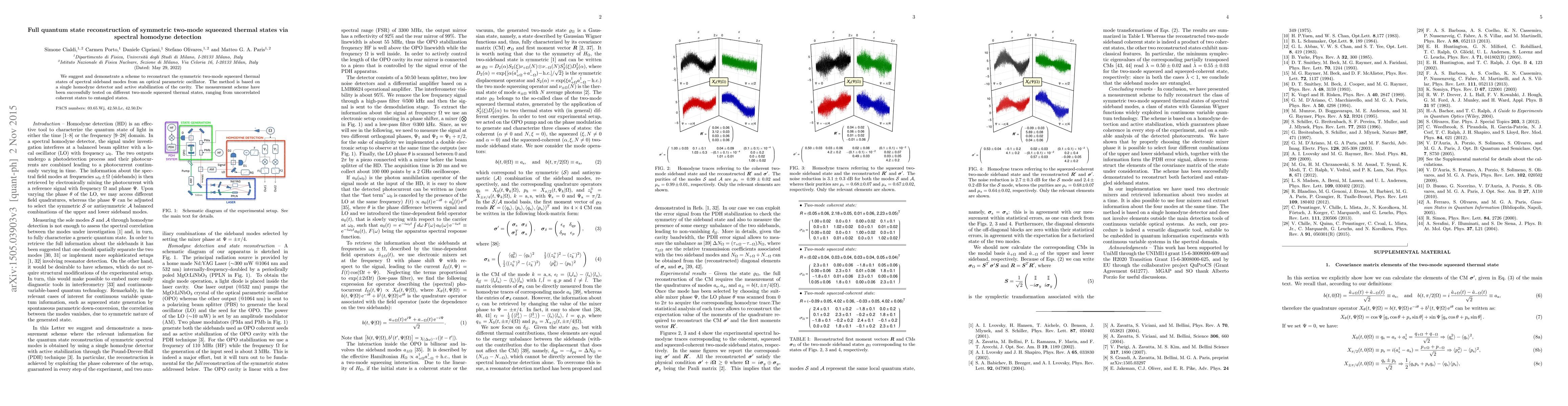 We suggest and demonstrate a scheme to reconstruct the symmetric two-mode squeezed thermal states of spectral sideband modes from an optical parametric oscillator. The method is based on a single homodyne detector and active stabilization of the cavity. The measurement scheme have been successfully tested on different two-mode squeezed thermal states, ranging from uncorrelated coherent states to entangled states.