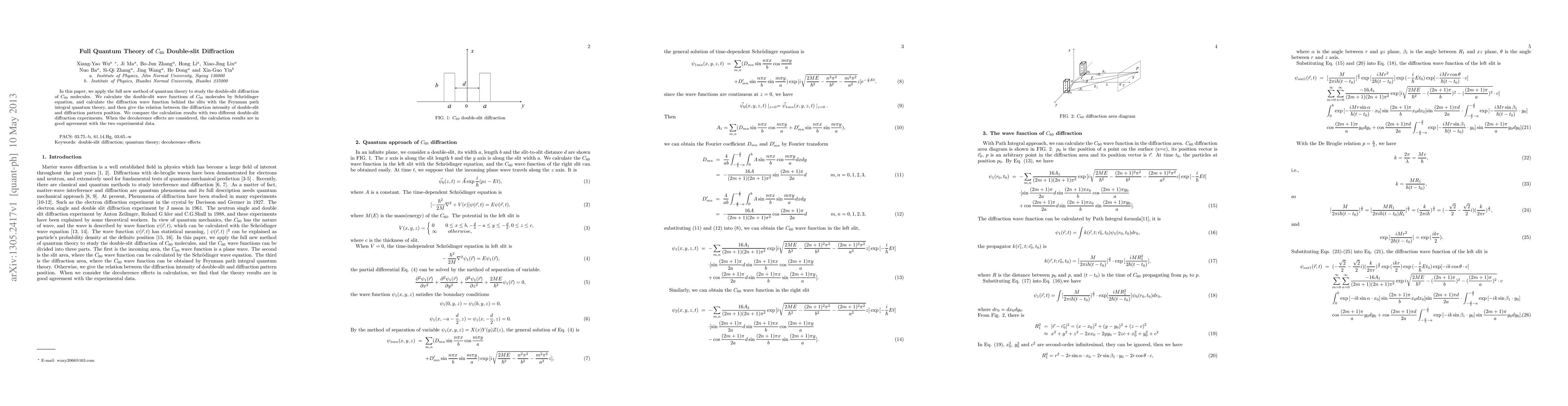 This paper applies a comprehensive quantum theory to analyze the double-slit diffraction of ${C_{60}}$ molecules, using Schrödinger and Feynman path integral methods to calculate wave functions, and finds agreement between theoretical results and experimental data when decoherence effects are accounted for.