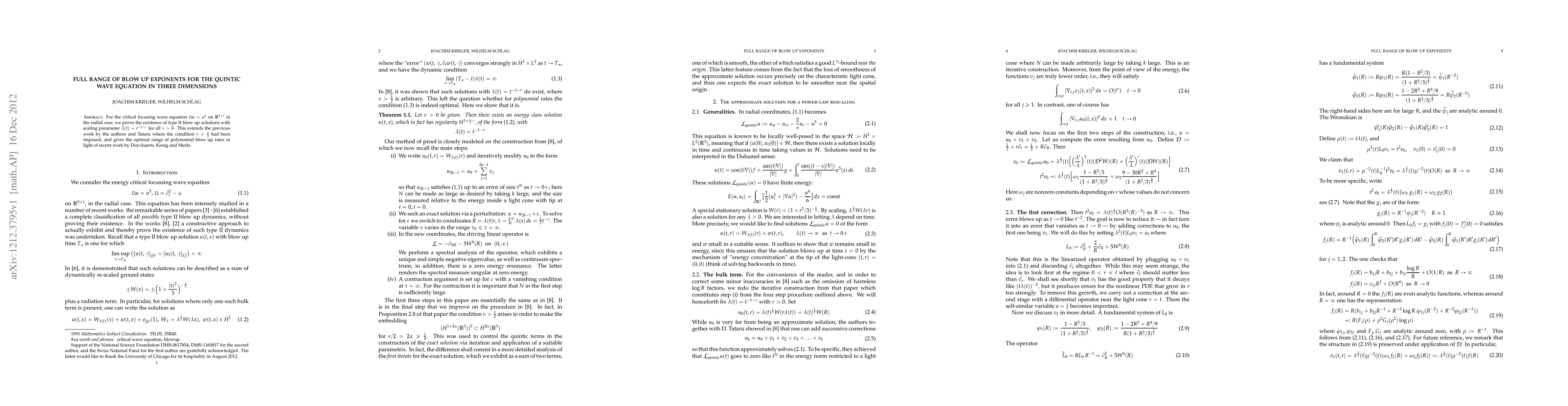 This research proves the existence of type II blow up solutions for the quintic wave equation in three dimensions, with scaling parameter u221alambda(t) = t^{-1- u} for all u > 0, thus extending previous work and providing the optimal range of polynomial blow up rates.