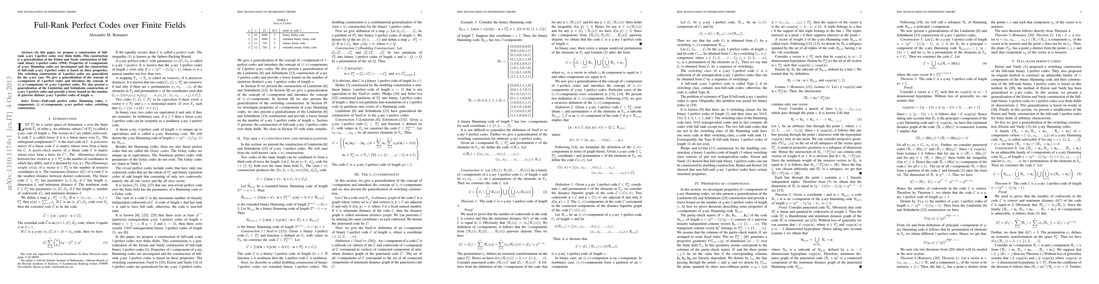 This paper presents a method to construct full-rank q-ary 1-perfect codes over finite fields, generalizing previous binary constructions, and introduces new components and a lower bound for the number of such codes of length n.