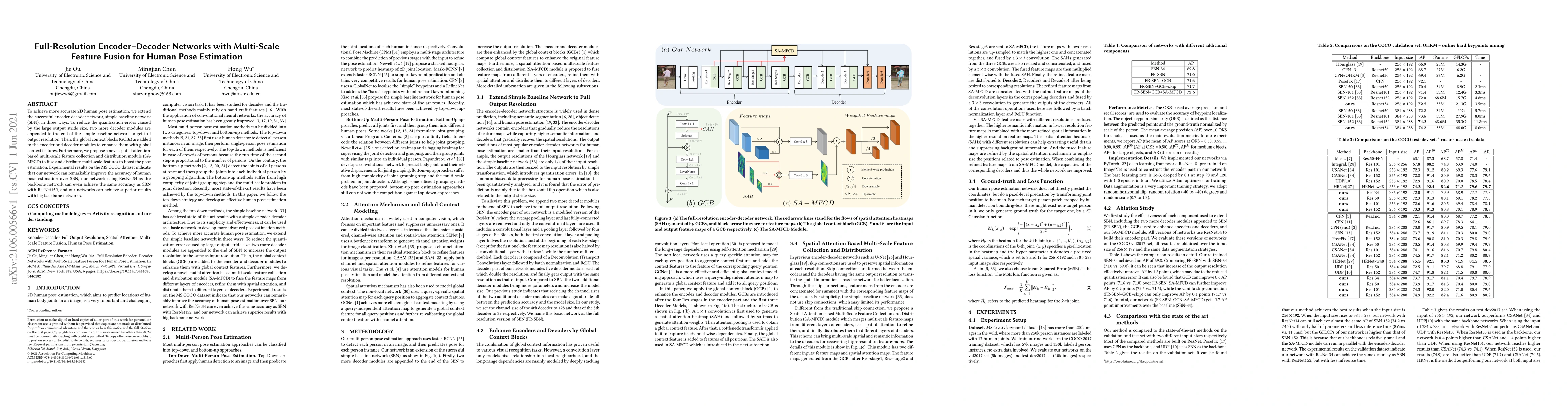 This paper proposes an improved human pose estimation network that achieves more accurate results by adding multiple features to enhance its performance, including full-resolution output, global context blocks, and a novel spatial-attention-based feature fusion module.