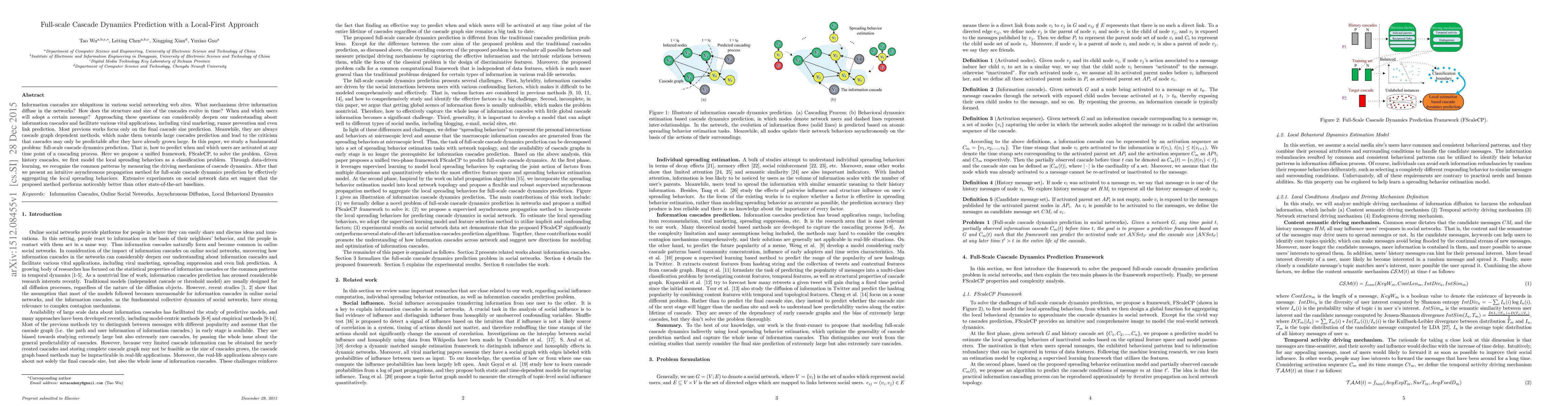 This paper proposes FScaleCP, a unified framework for predicting the full-scale dynamics of information cascades in social networks by modeling local spreading behaviors and employing an asynchronous propagation method. The method outperforms existing approaches in predicting when and which users will be activated during the cascade process.