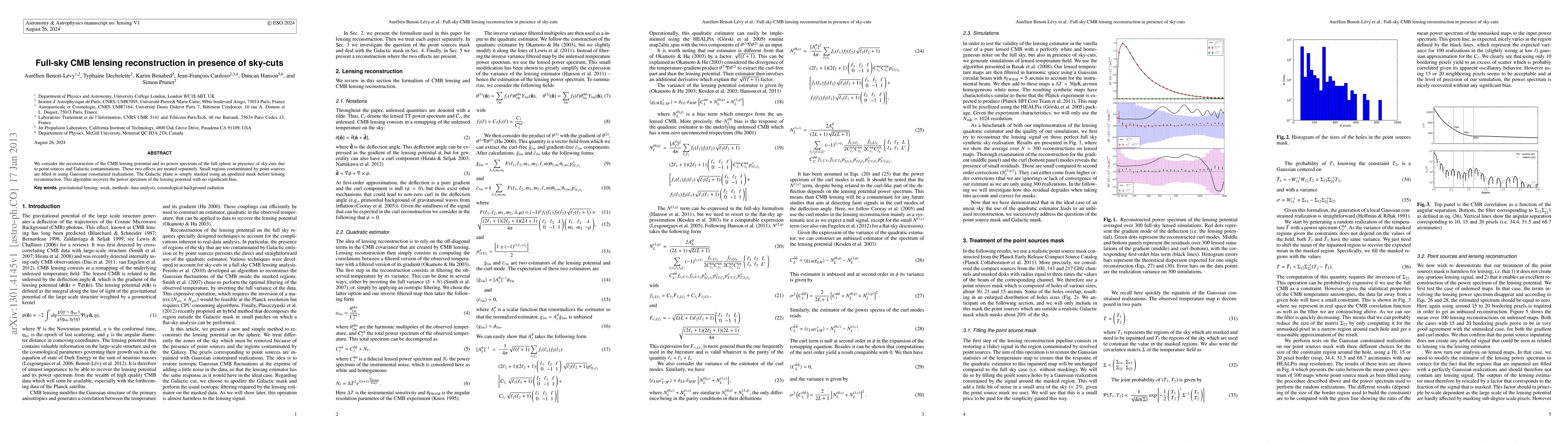This paper presents a method for reconstructing the full-sky Cosmic Microwave Background (CMB) lensing potential and its power spectrum despite sky-cuts from point sources and Galactic contamination. It employs Gaussian-constrained realizations to fill in point source regions and masks the Galactic plane before reconstruction, achieving an unbiased power spectrum recovery.