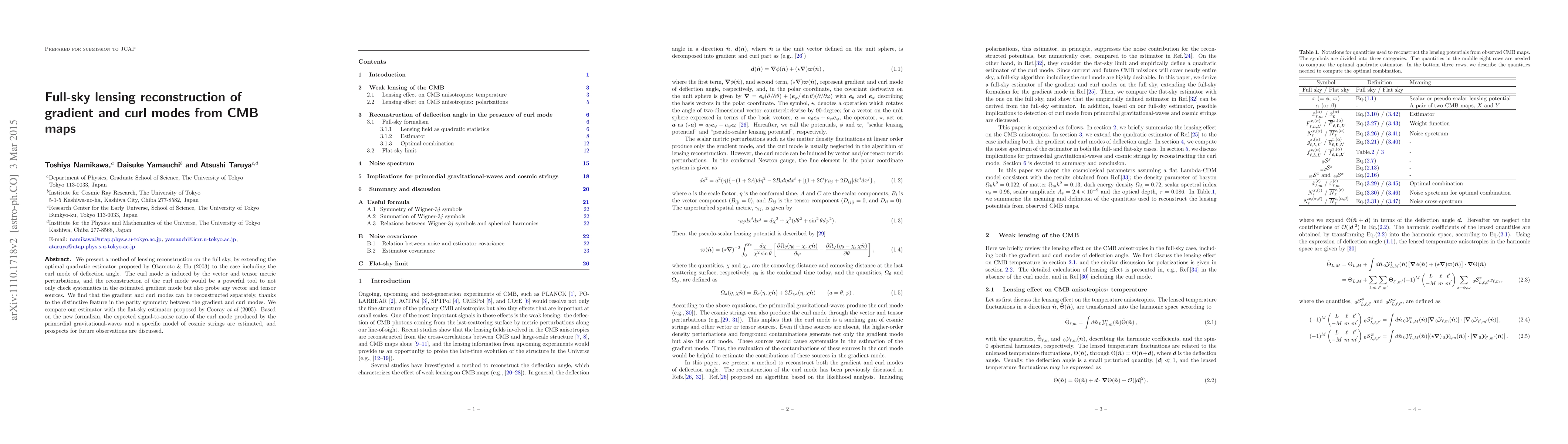 This paper presents a method for reconstructing full-sky lensing, including the curl mode, using an extended optimal quadratic estimator. The curl mode, induced by vector and tensor perturbations, provides insights into systematics and potential sources, and is separable from the gradient mode due to parity symmetry differences.