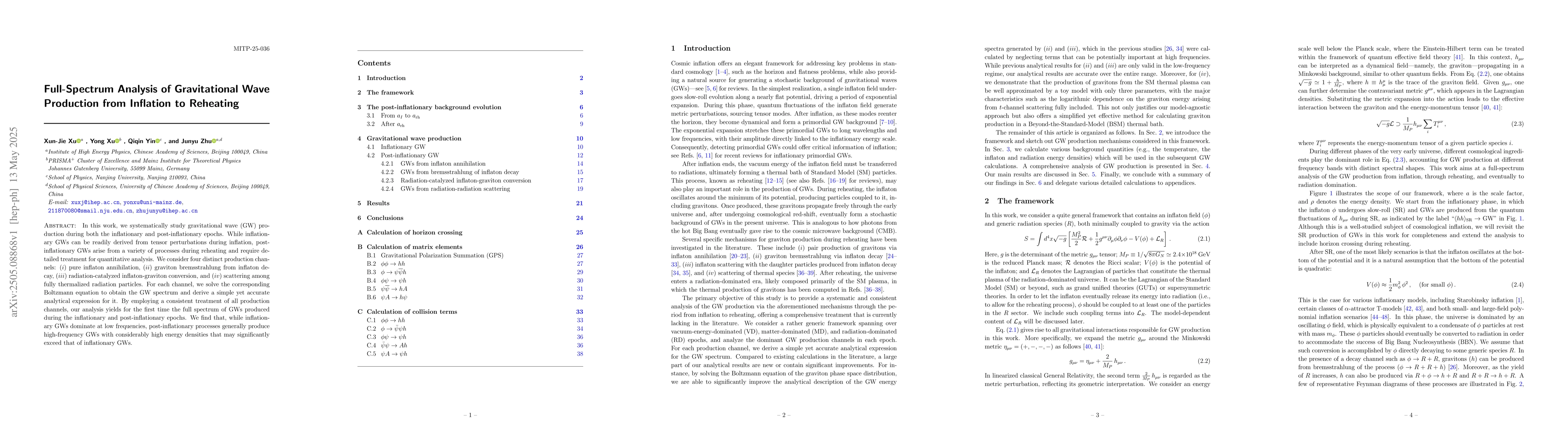 This work distinguishes itself by providing the first comprehensive full-spectrum analysis that unifies inflationary and post-inflationary GW production, offering a more complete picture of GW generation in the early universe.