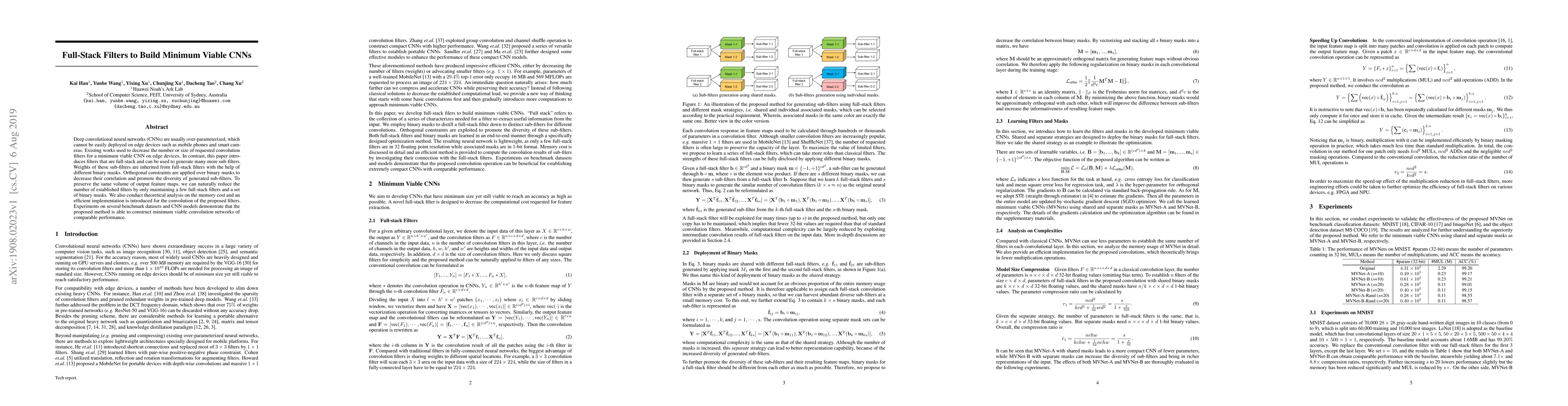 This paper proposes full-stack filters to create more sub-filters for minimum viable CNNs on edge devices, using binary masks and orthogonal constraints to enhance diversity and reduce memory. Experiments show comparable performance to traditional CNNs.